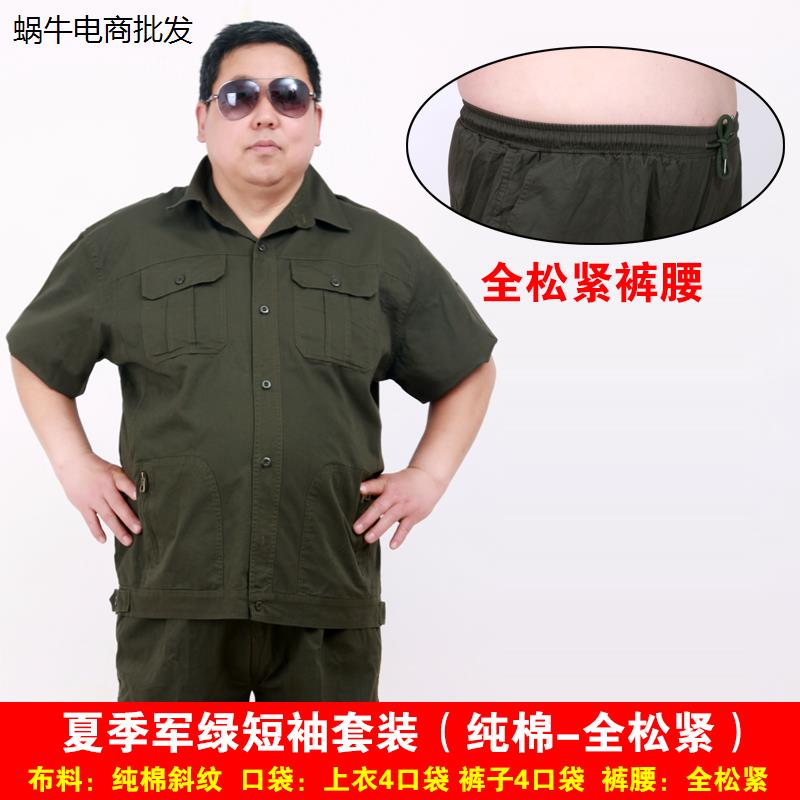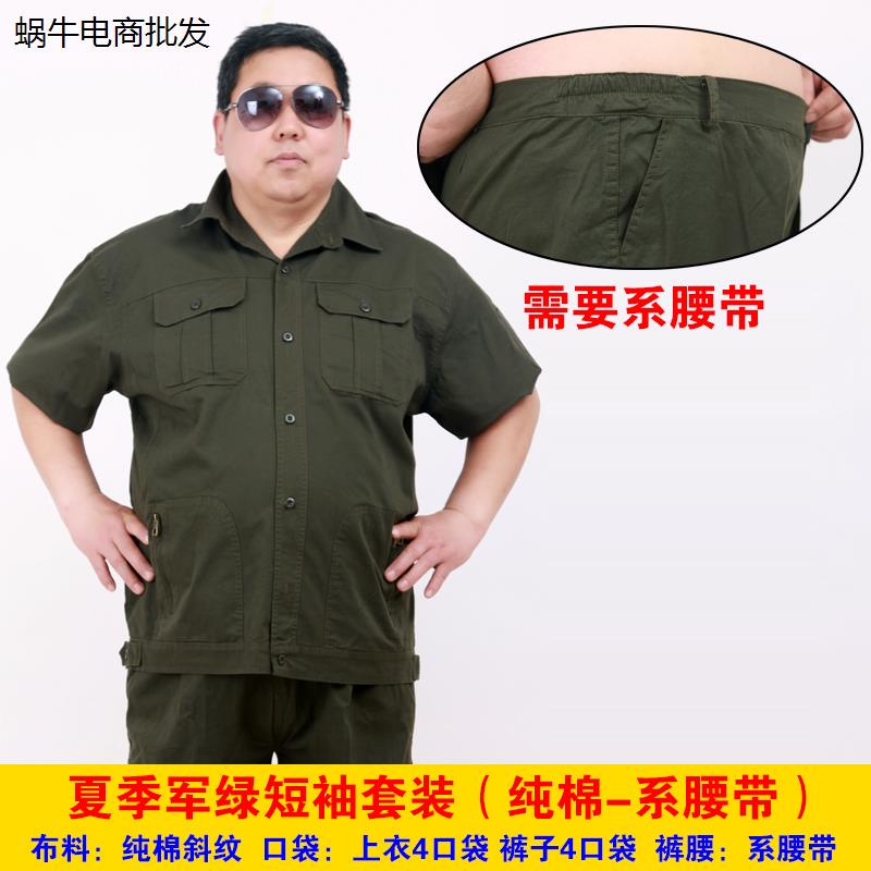 工作服套装男特大码加肥加大耐磨宽松纯棉夏季薄款短袖裤子劳保服