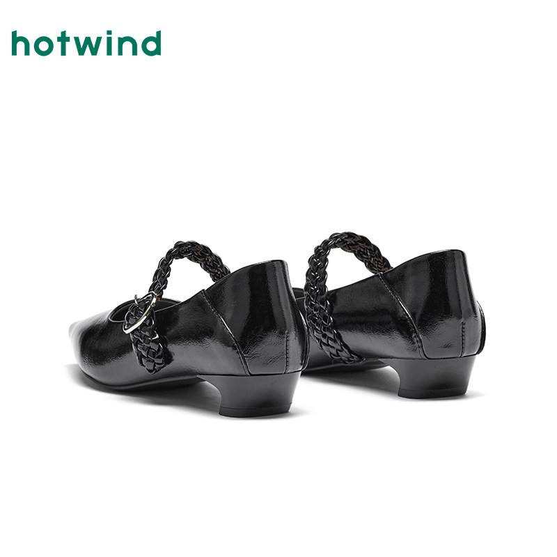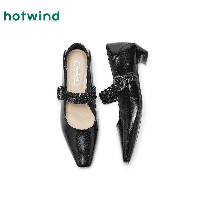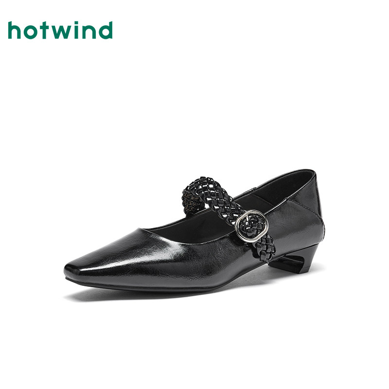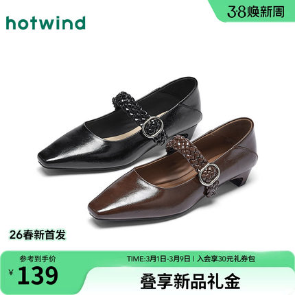 热风复古浅口单鞋女2026年春季新款法式低跟尖头女鞋百搭玛丽珍鞋