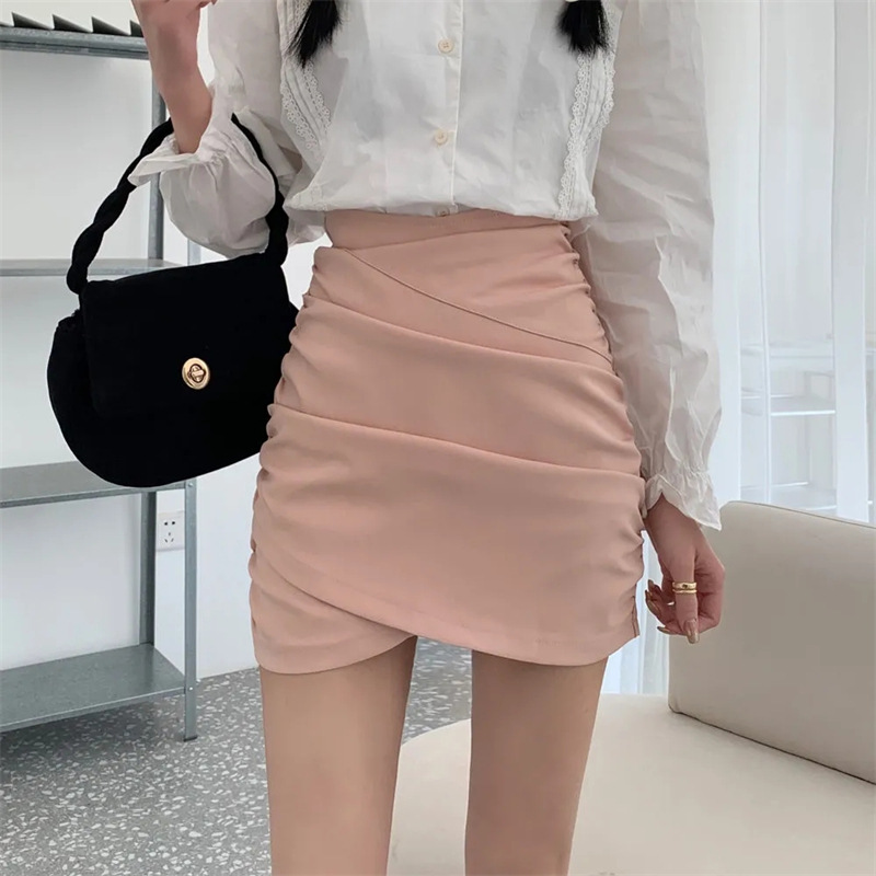 2023春夏新款褶皱不规则高腰半身裙女装a字裙修身显瘦包臀短裙子