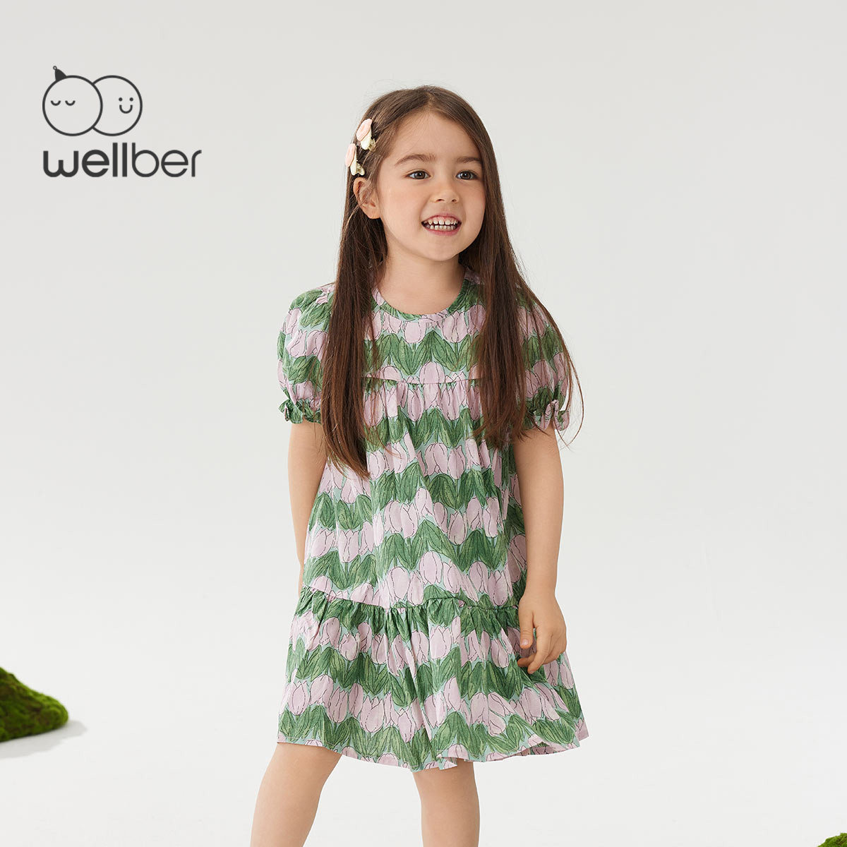 威尔贝鲁儿童连衣裙夏季女童短袖公主裙2023新款宝宝纯棉裙子洋气