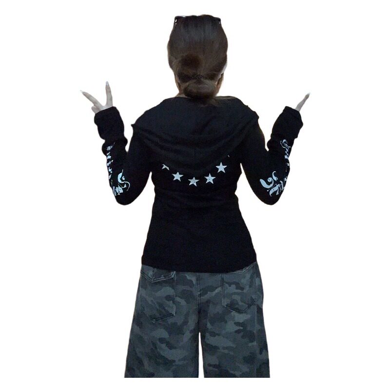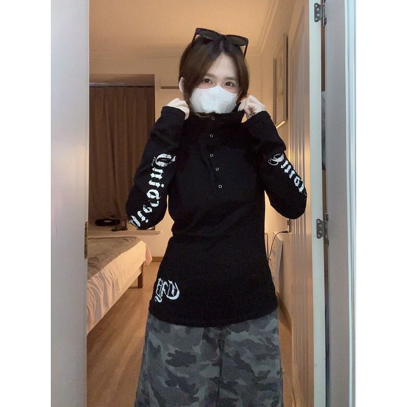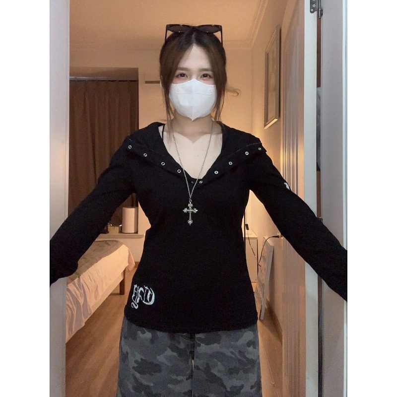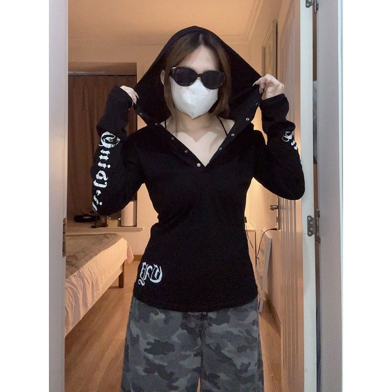 大码胖mm美式长袖印花连帽T恤女秋装休闲感显瘦时尚别致辣妹上衣