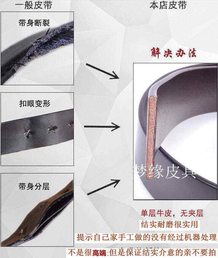 手工头层牛皮男真皮不带头自动扣裤带无头腰带皮带条青年商务带身