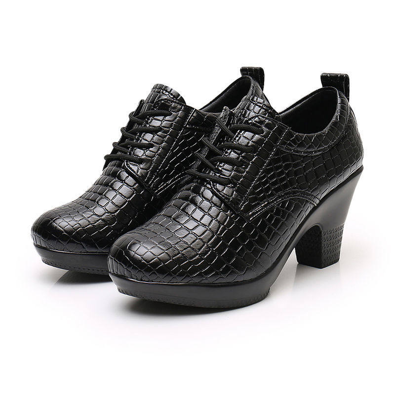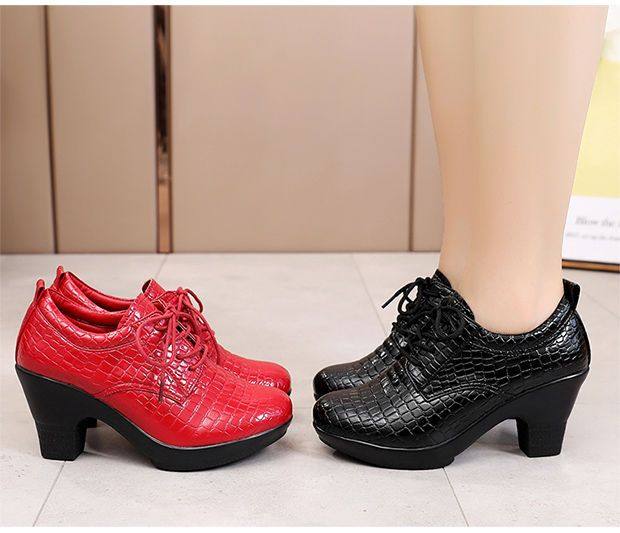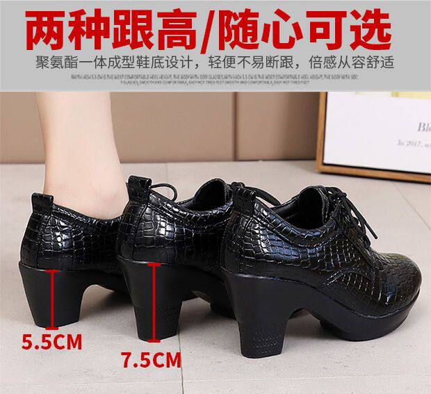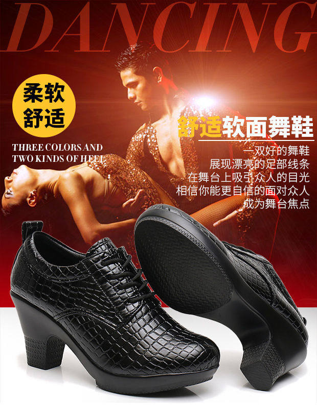 四季舒适交谊广场舞鞋牛皮中帮系带柔软中跟底跳舞鞋女士摩登成人