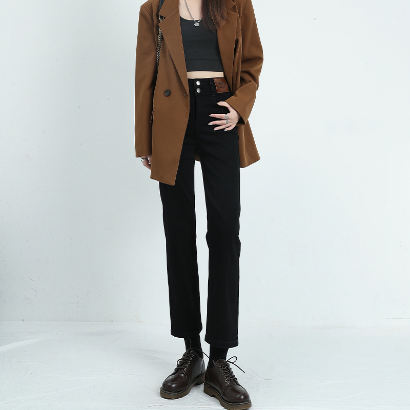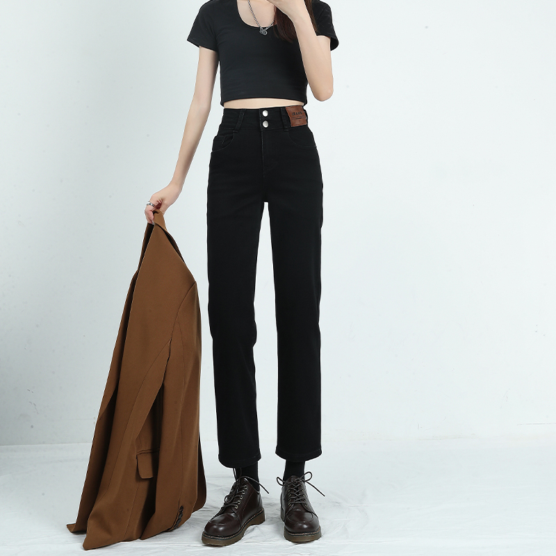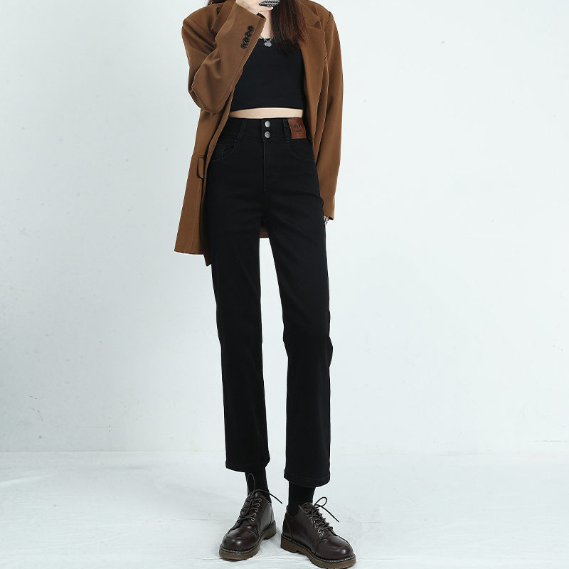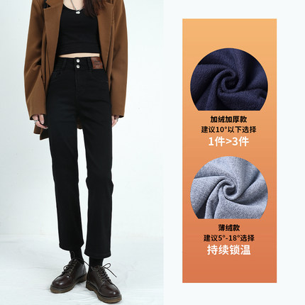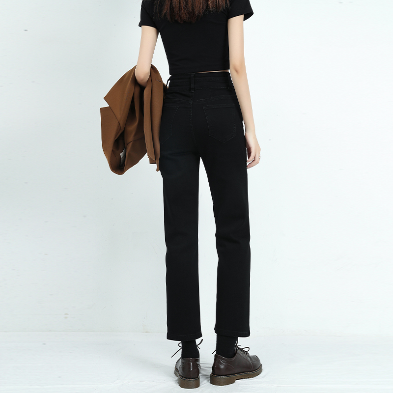 黑色直筒牛仔裤女2025秋冬加绒高个子高腰弹力修身显瘦法烟管裤子