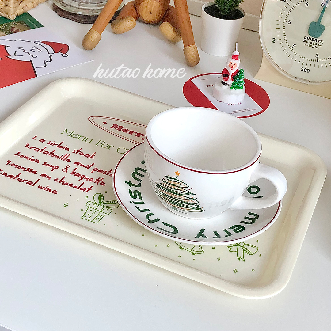 原创自制ins风韩式圣诞托盘奶油色红绿配色食品级密胺置物盘收纳