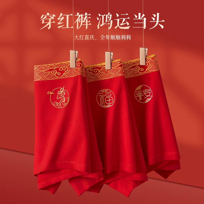 红色内裤男士本命年m纯棉龙年结婚属龙2023新款四角大码平角短裤
