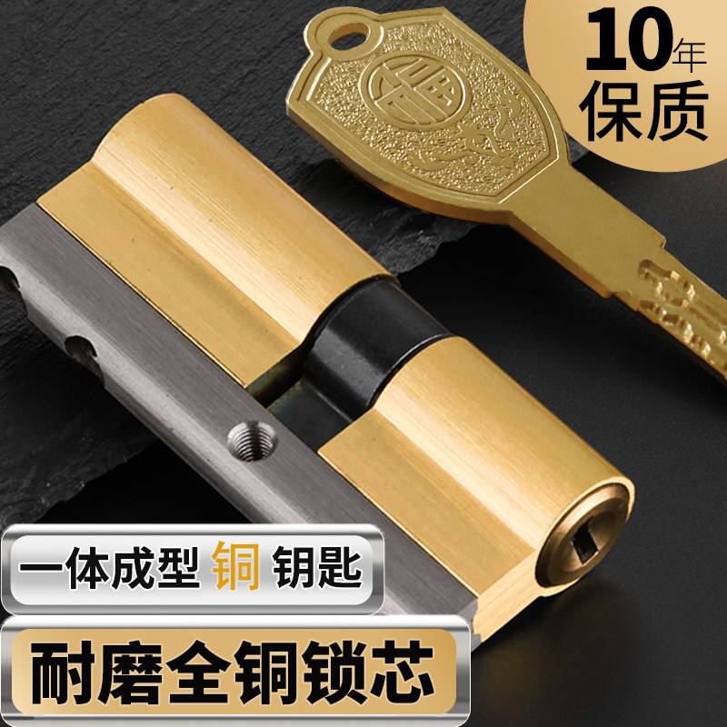 全铜一体钥匙防盗门通用超c级锁芯进户门锁芯家用ab叶片多轨道