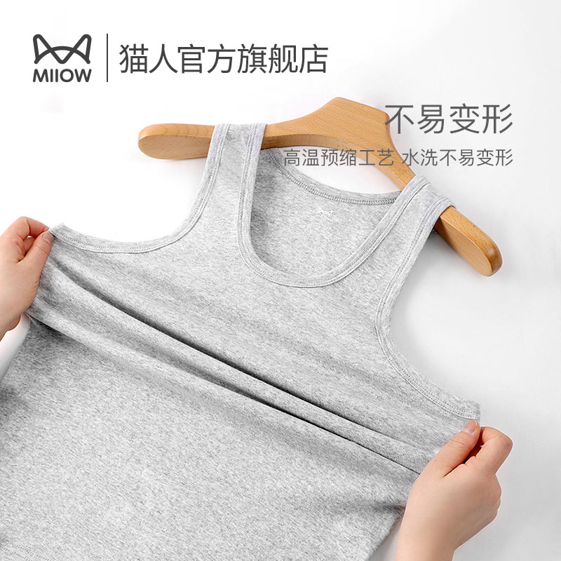 猫人男士背心白色纯棉薄款无痕潮吊带跨栏运动训练工字宽松老头衫