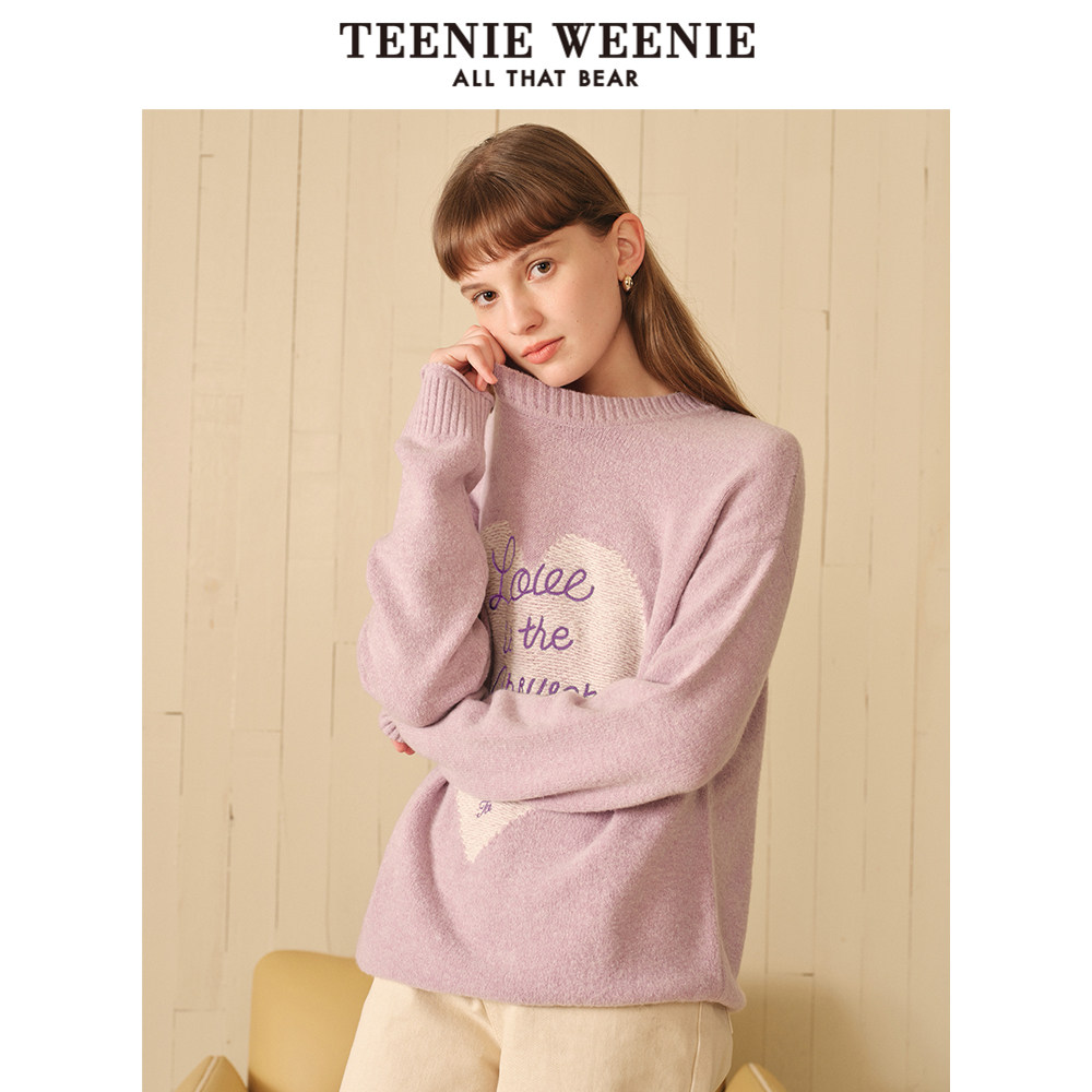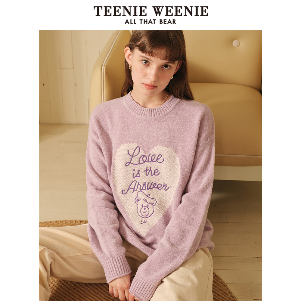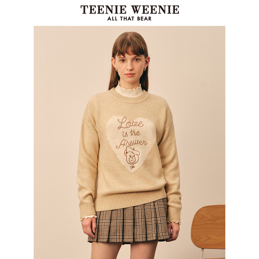TeenieWeenie小熊奥莱毛衣秋冬简约时尚爱心提花字母柔软舒适毛衫