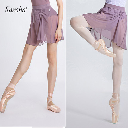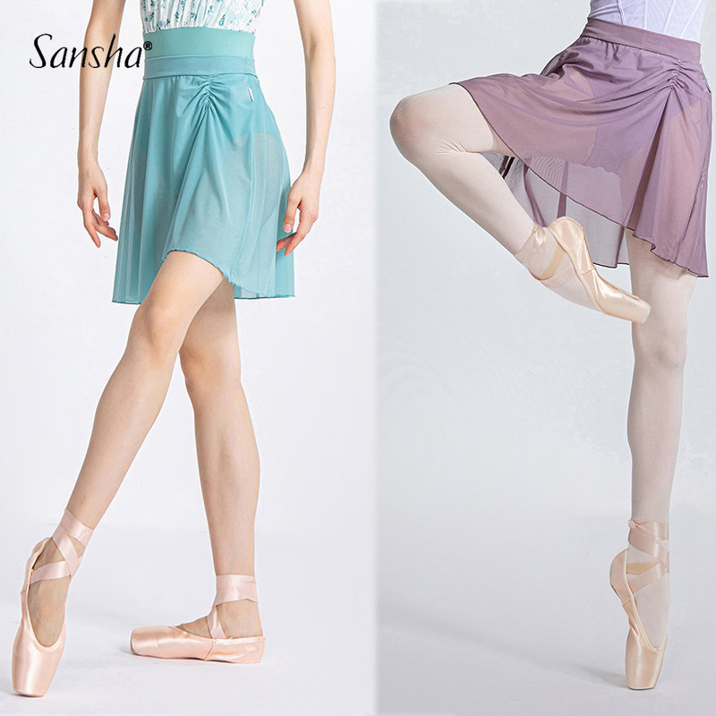 Sansha三沙芭蕾舞蹈纱裙女瑜伽训练半身裙网纱中国舞练功A字短裙