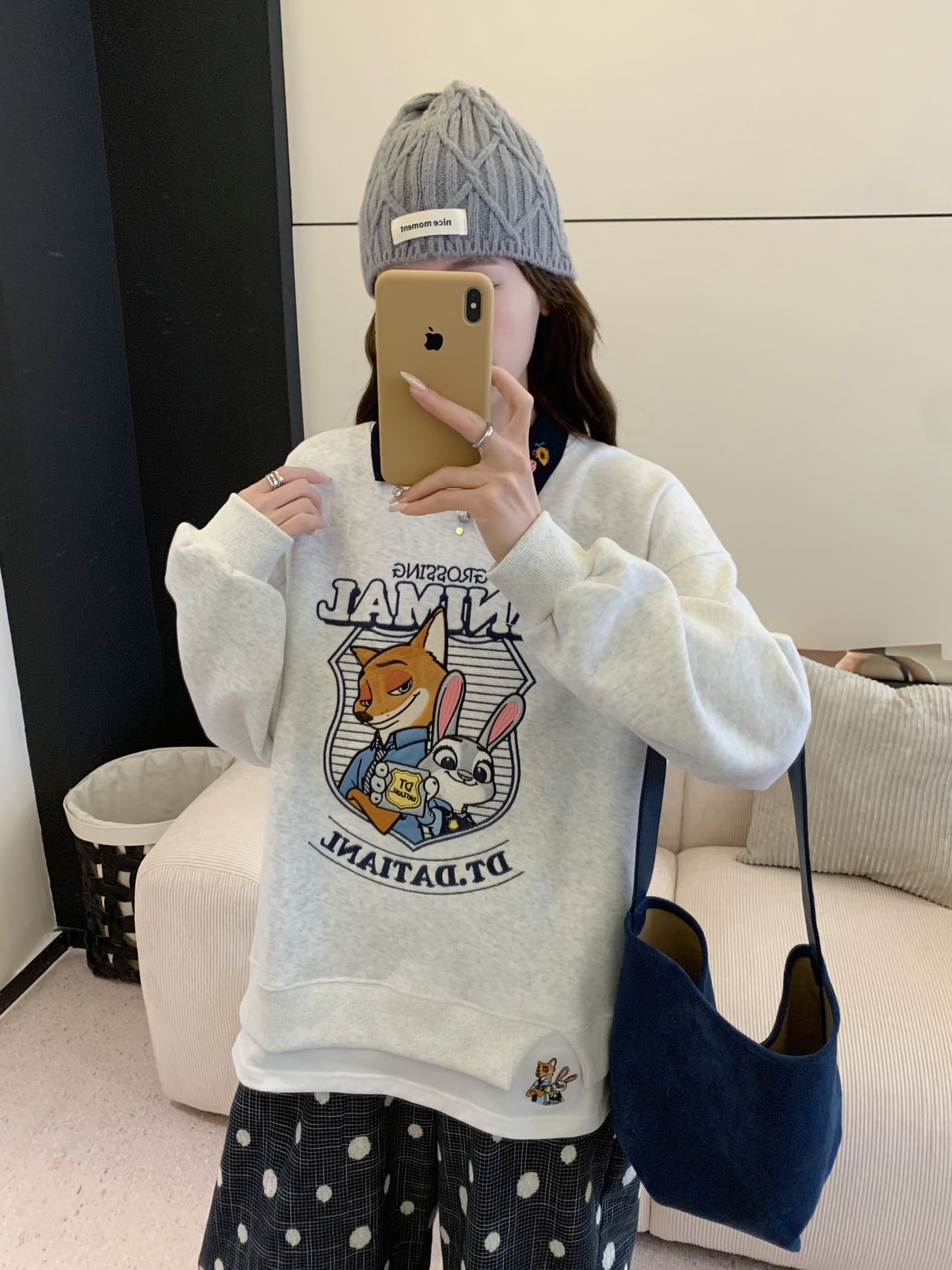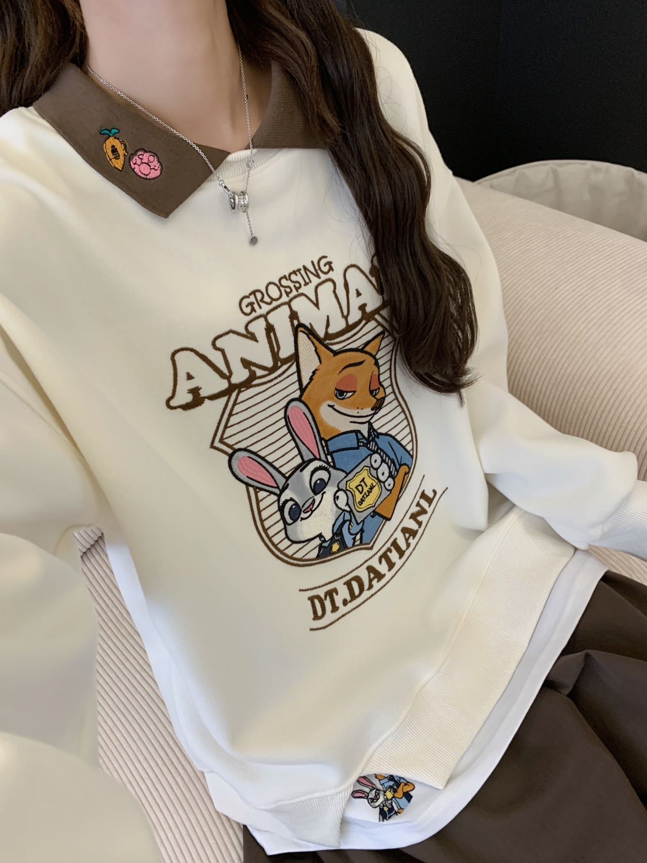 疯狂动物城重工刺绣翻领卫衣女宽松百搭长袖显瘦套头衫潮牌卫衣女