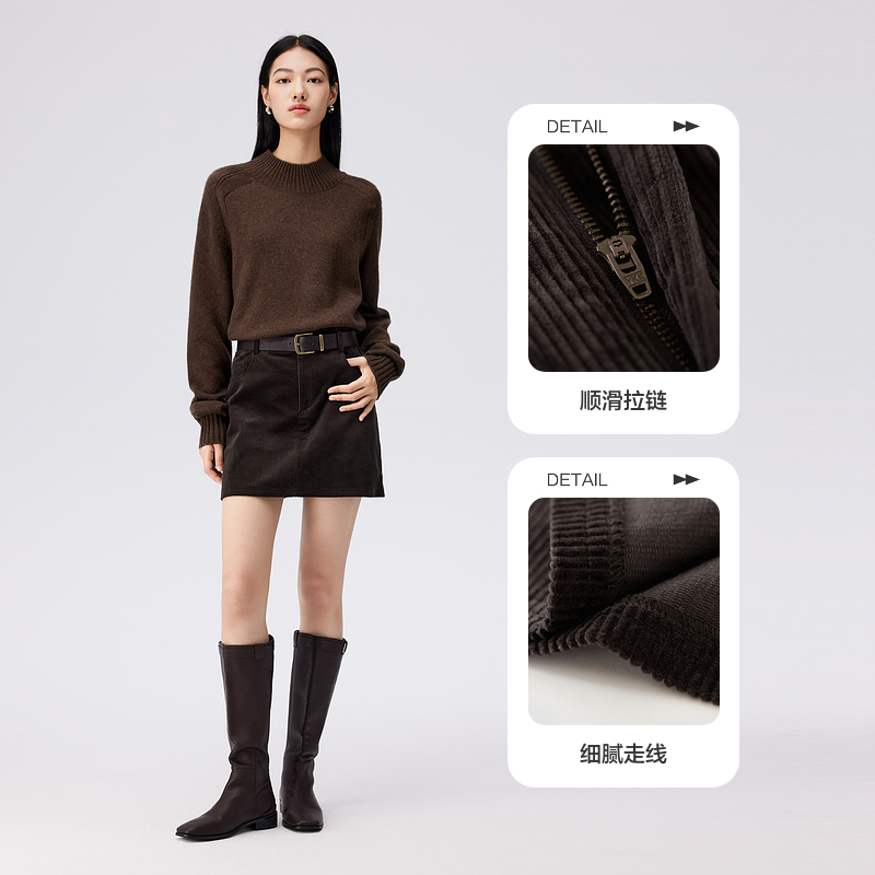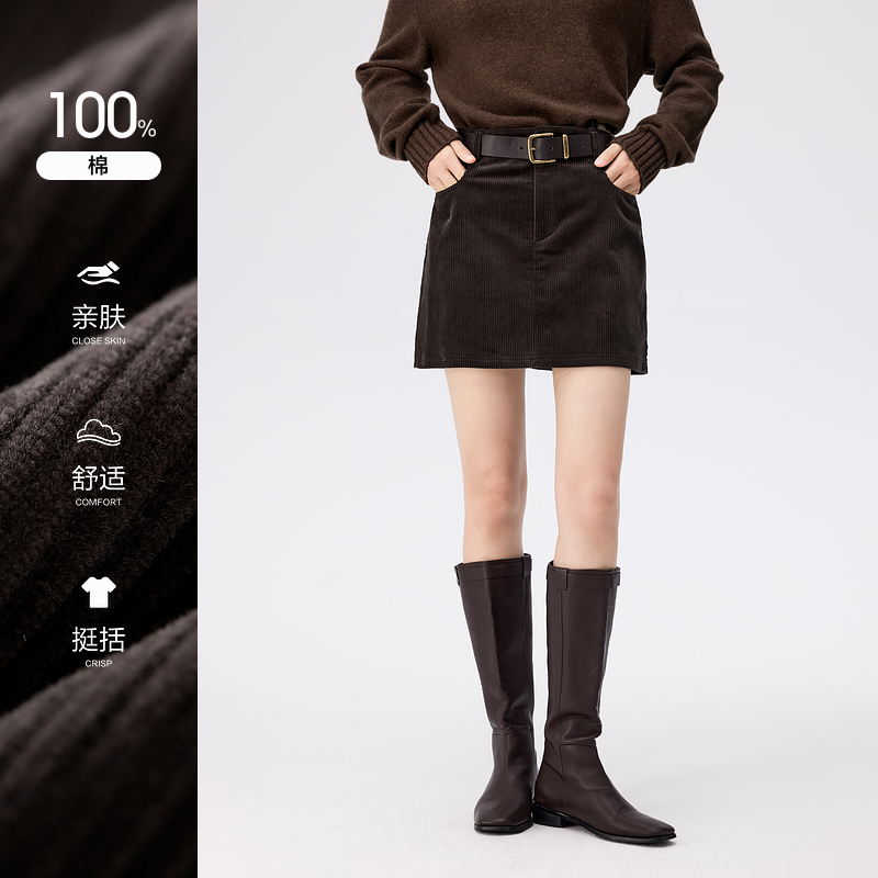 水云间复古咖色灯芯绒短裙女a字半身裙子摩卡慕斯风2025秋冬新款