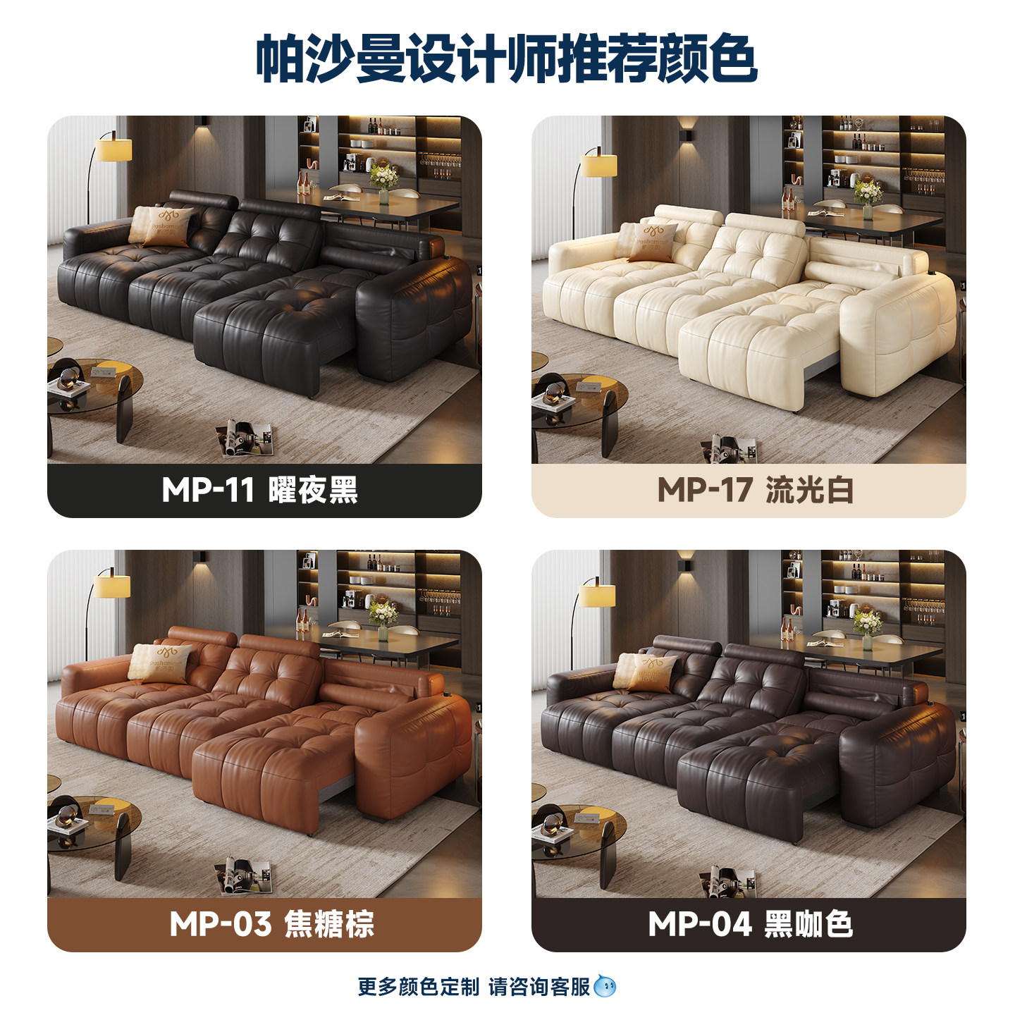 帕沙曼真皮多功能智能电动沙发劳伦斯头层牛皮意式复古可伸缩调节