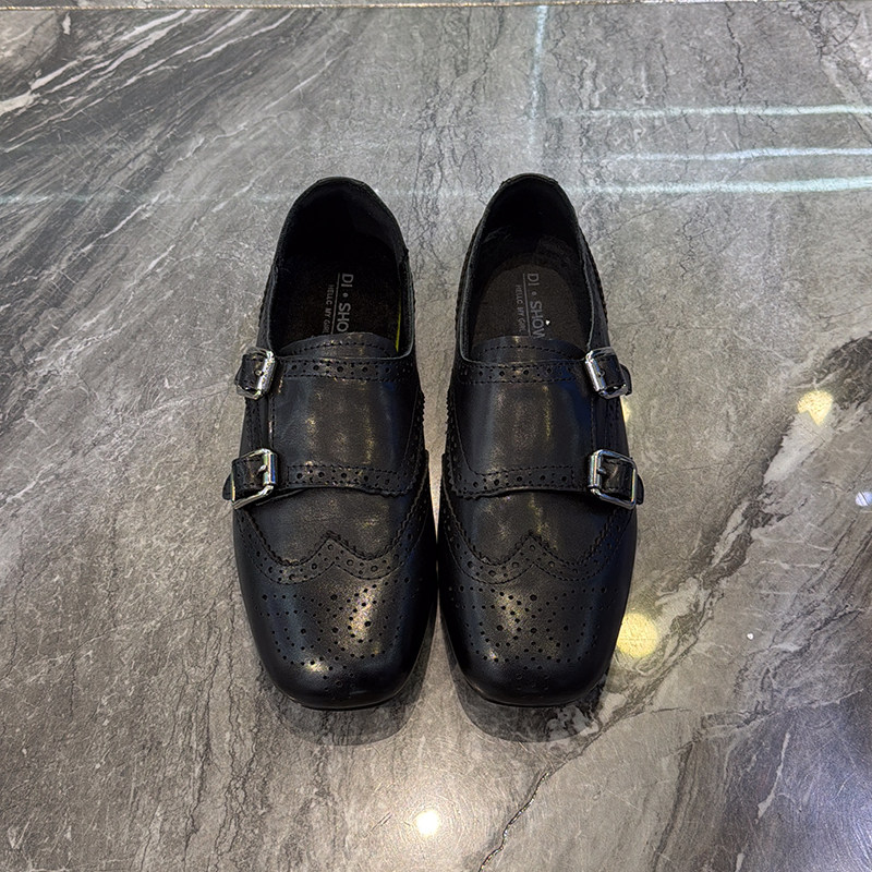 时髦雕花小皮鞋配裙百搭巴洛克鞋