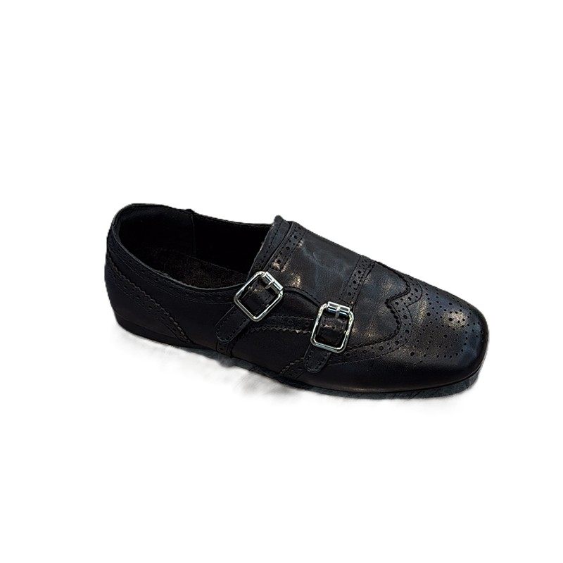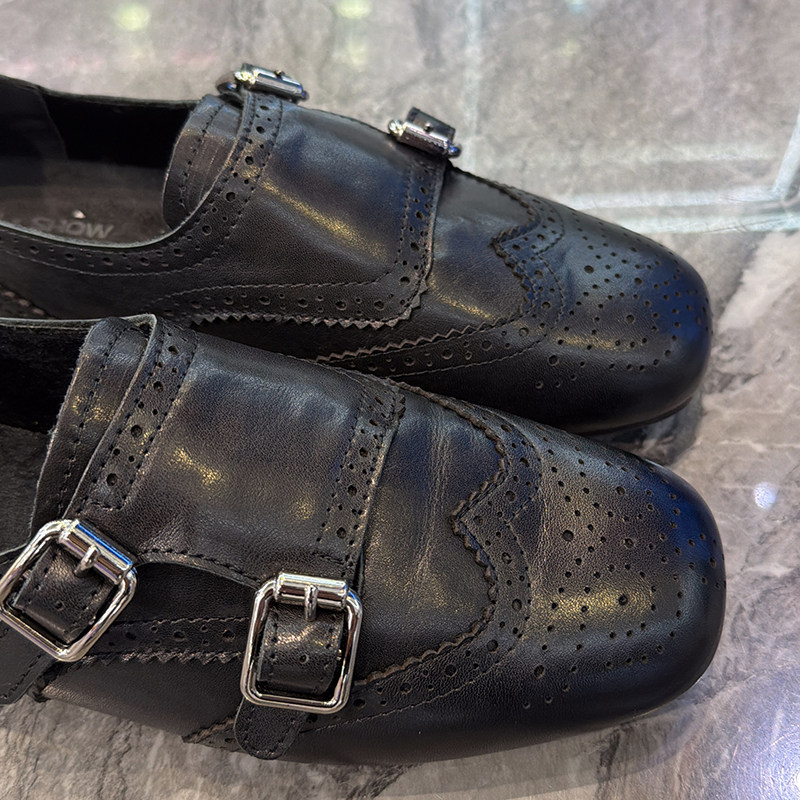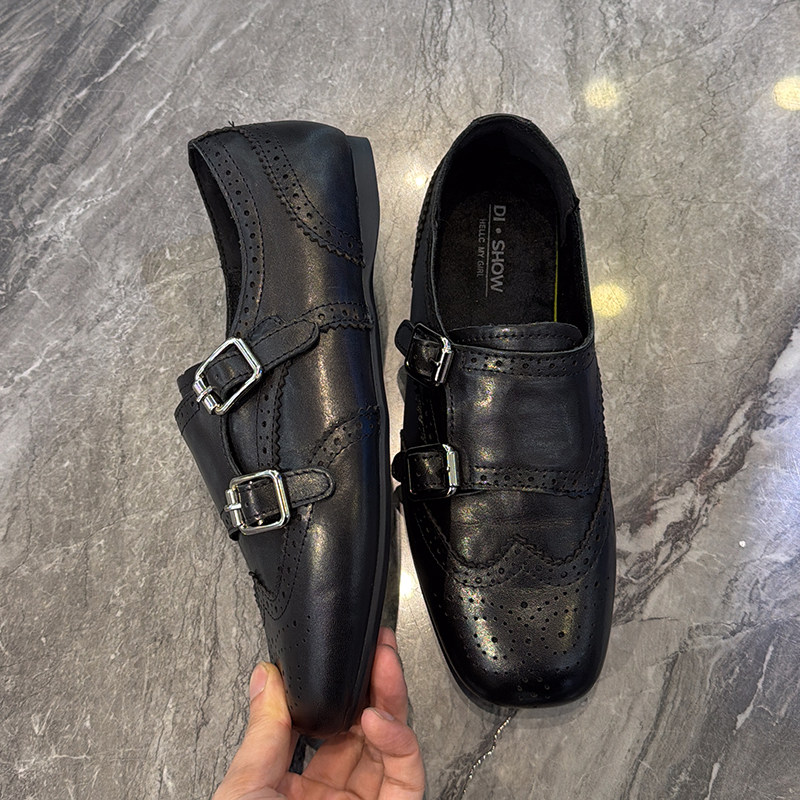 复古牛皮软底巴洛克鞋女2025冬新款轻奢英伦平底单鞋皮带扣小皮鞋