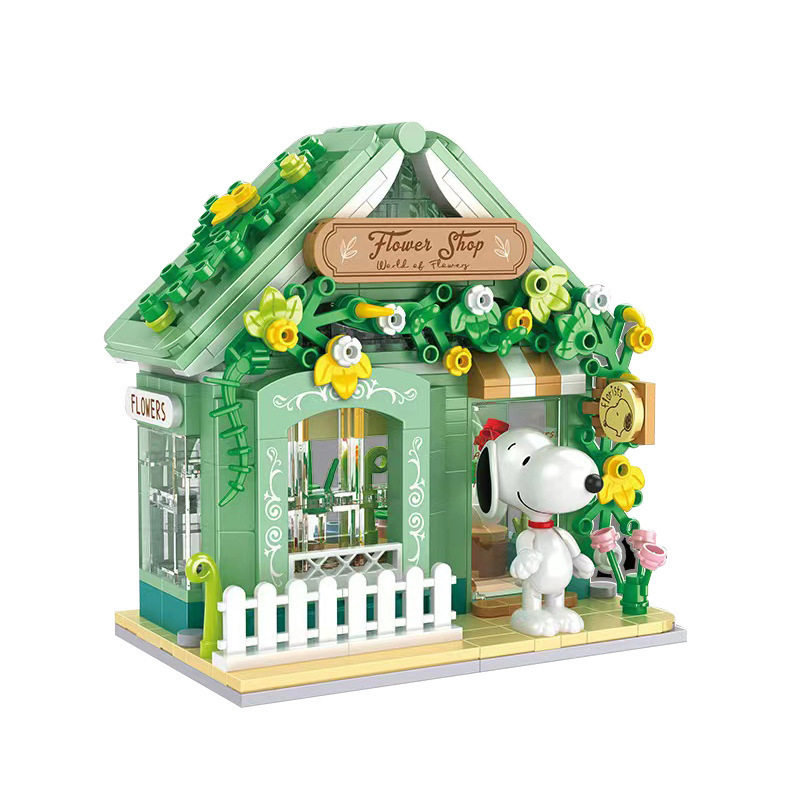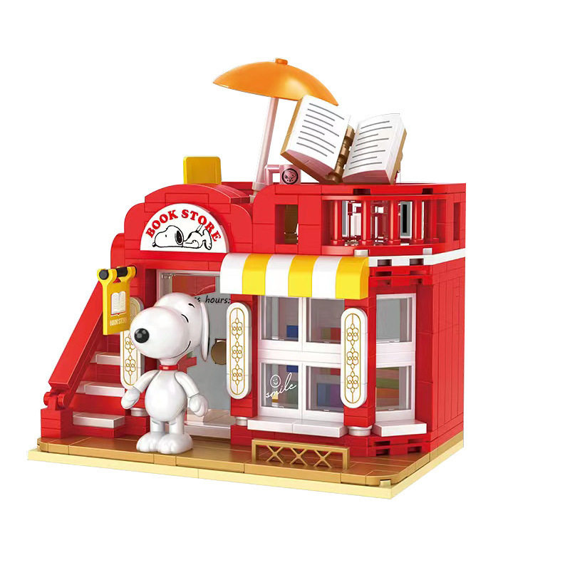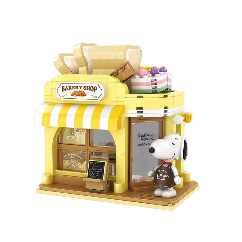 恒三和S012咔扣积木正版史努比公仔卡通街景创意摆件儿童玩具礼物