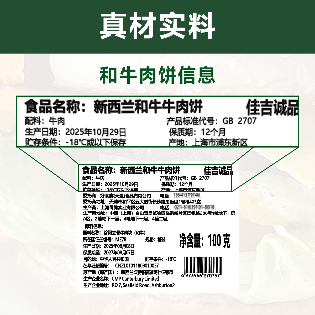 【胡可推荐】佳吉诚品新西兰和牛肉饼100g*10片原切谷饲和牛肉