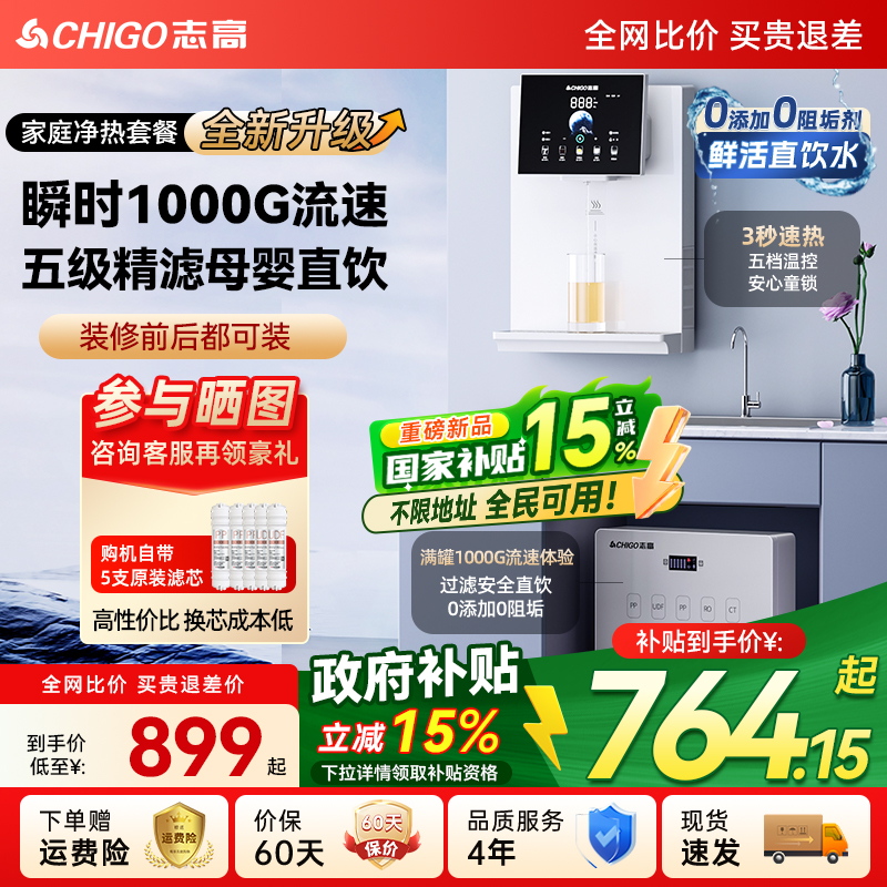 政府补贴志高净水器家用厨房自来水直饮管线机加热一体净水机套装