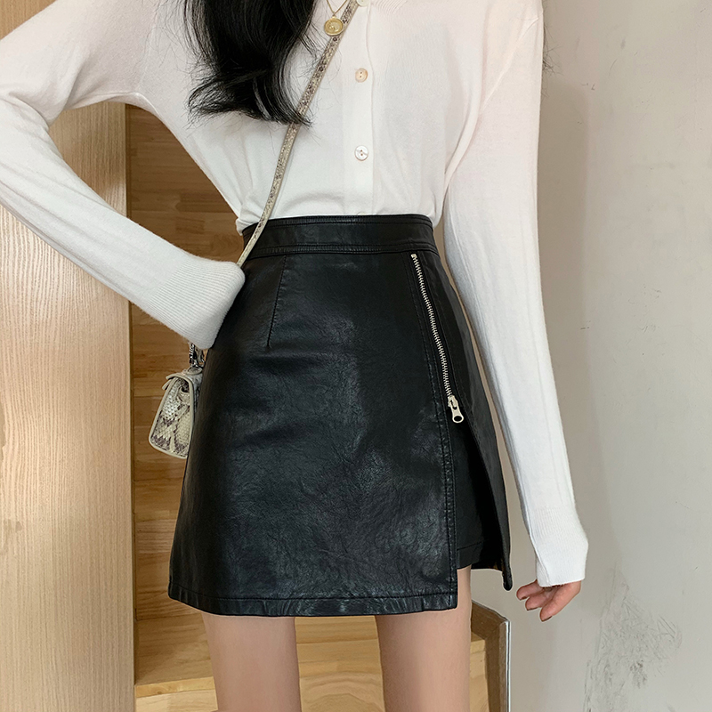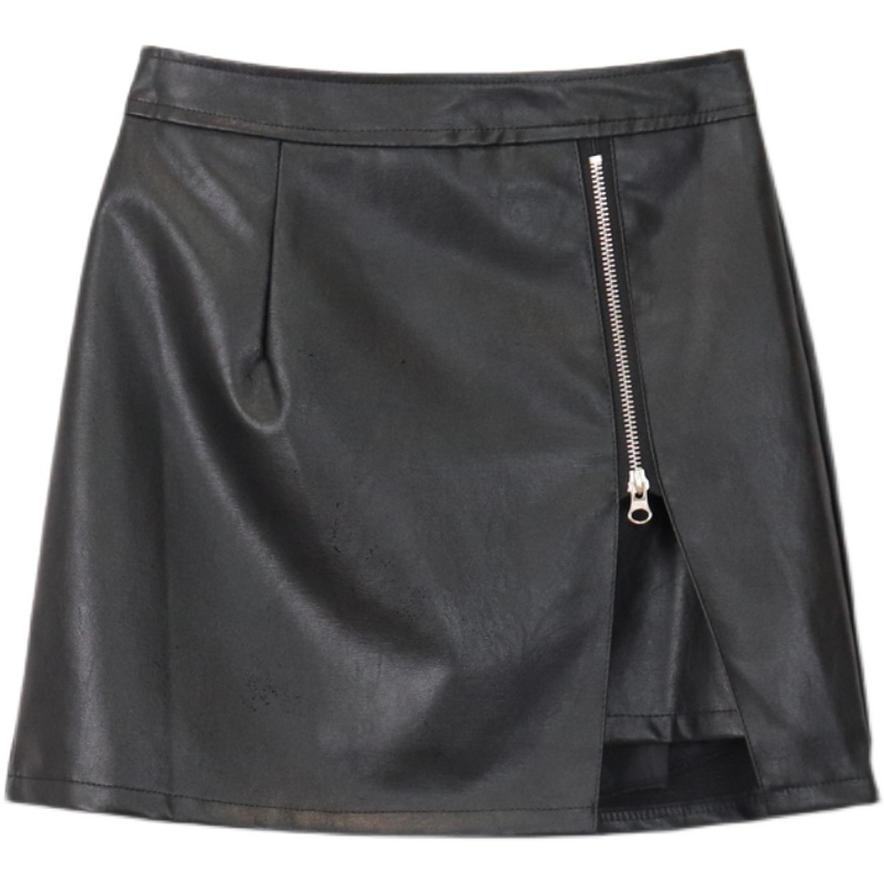 秋冬2023新款韩版高腰显瘦不规则拉链包臀裙PU皮A字半身裙女裙子