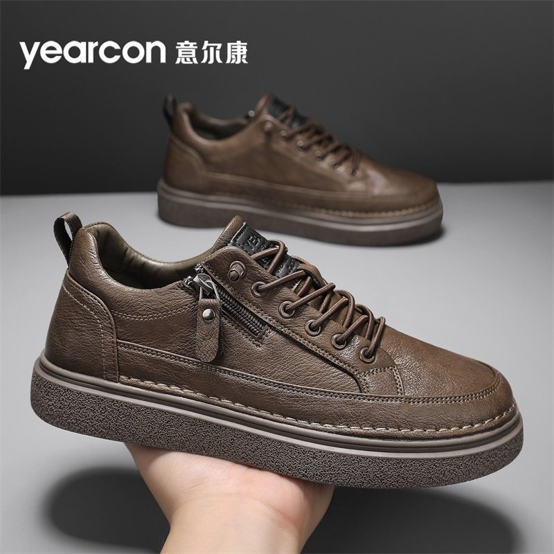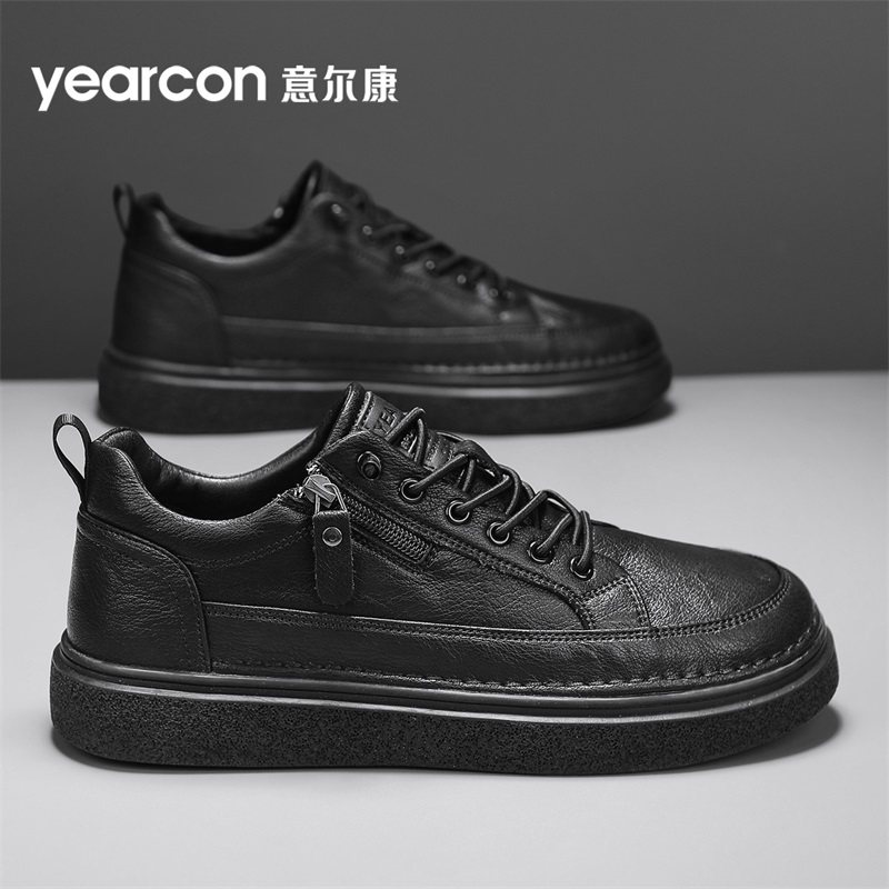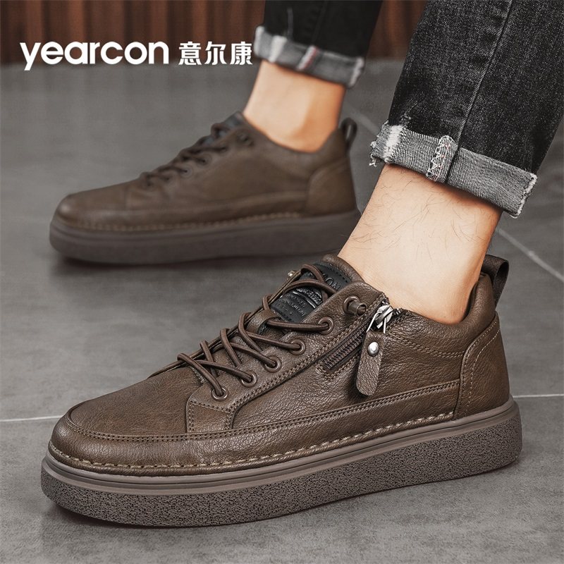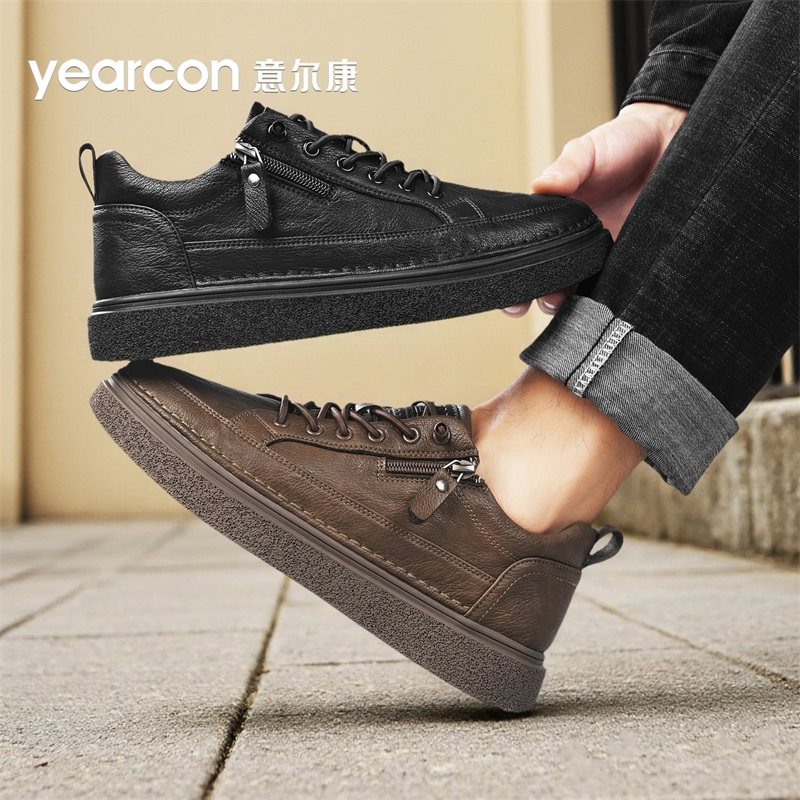 意尔康板鞋男款2026新款冬季加绒保暖棉鞋免系带软底男士休闲皮鞋
