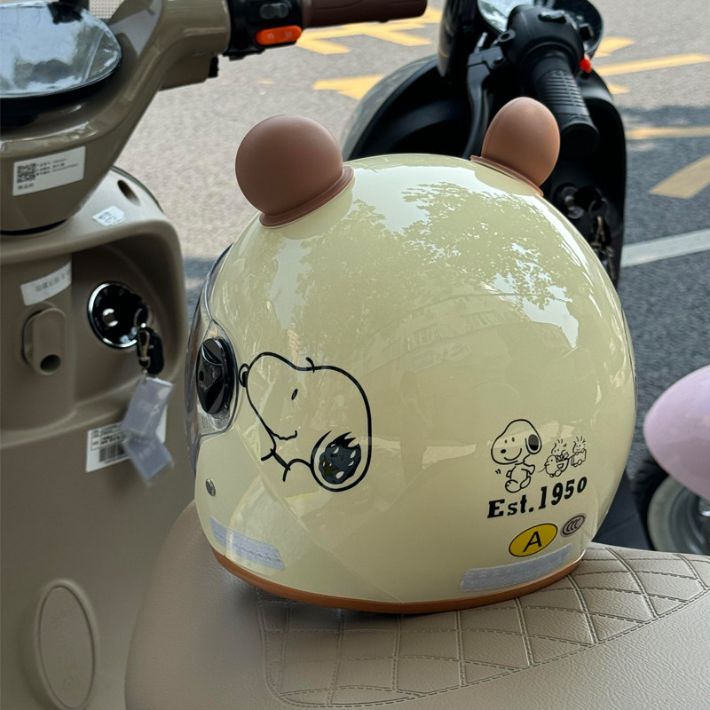 史努比头盔3C认证电动车女士冬季长镜片秋冬款保暖护耳男生安全帽