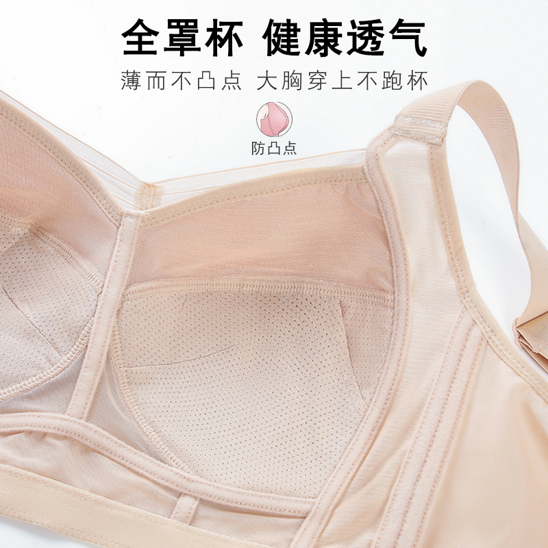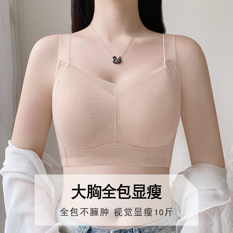 无痕内衣女大胸显小夏季薄款全罩杯全包收副乳防下垂显胸小的文胸