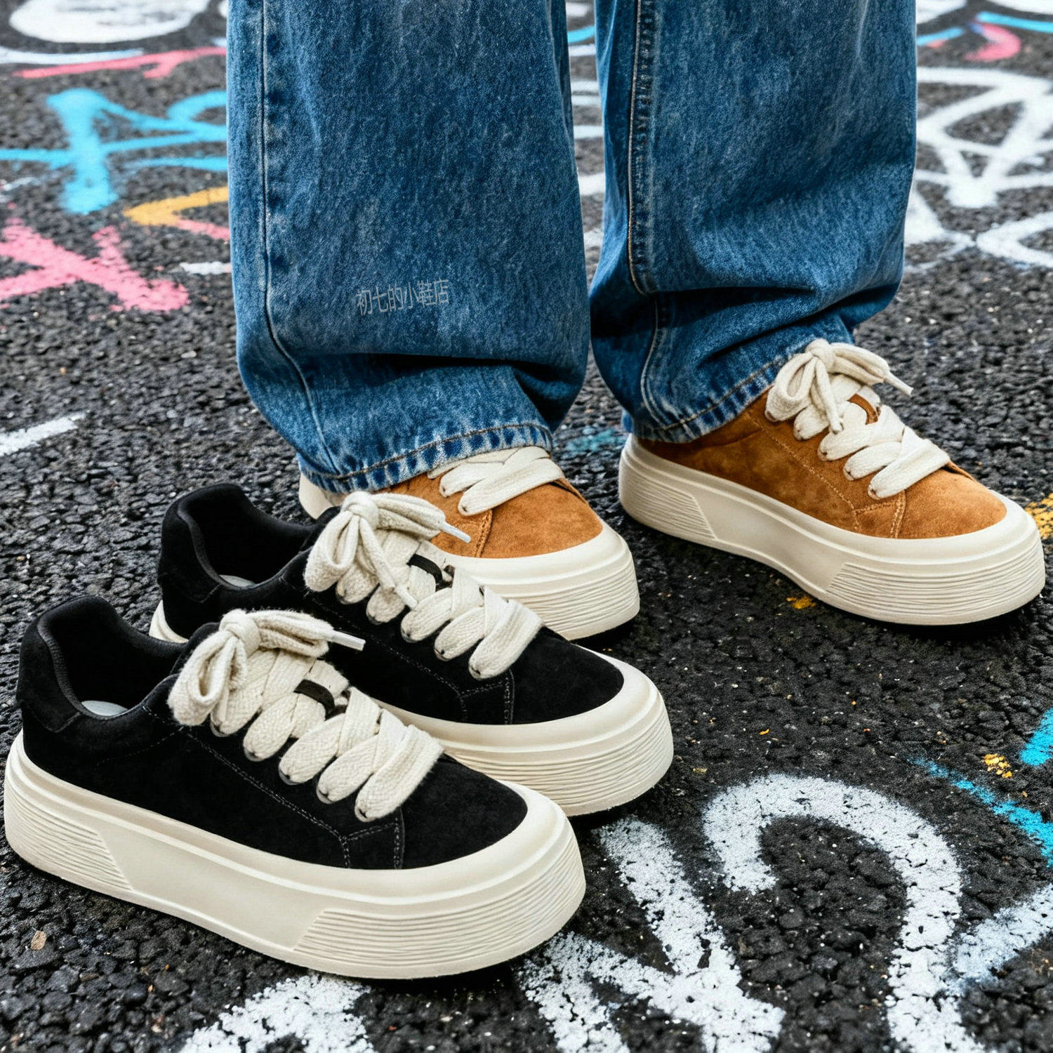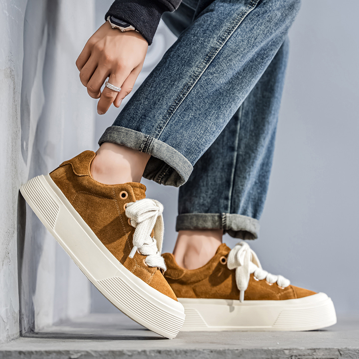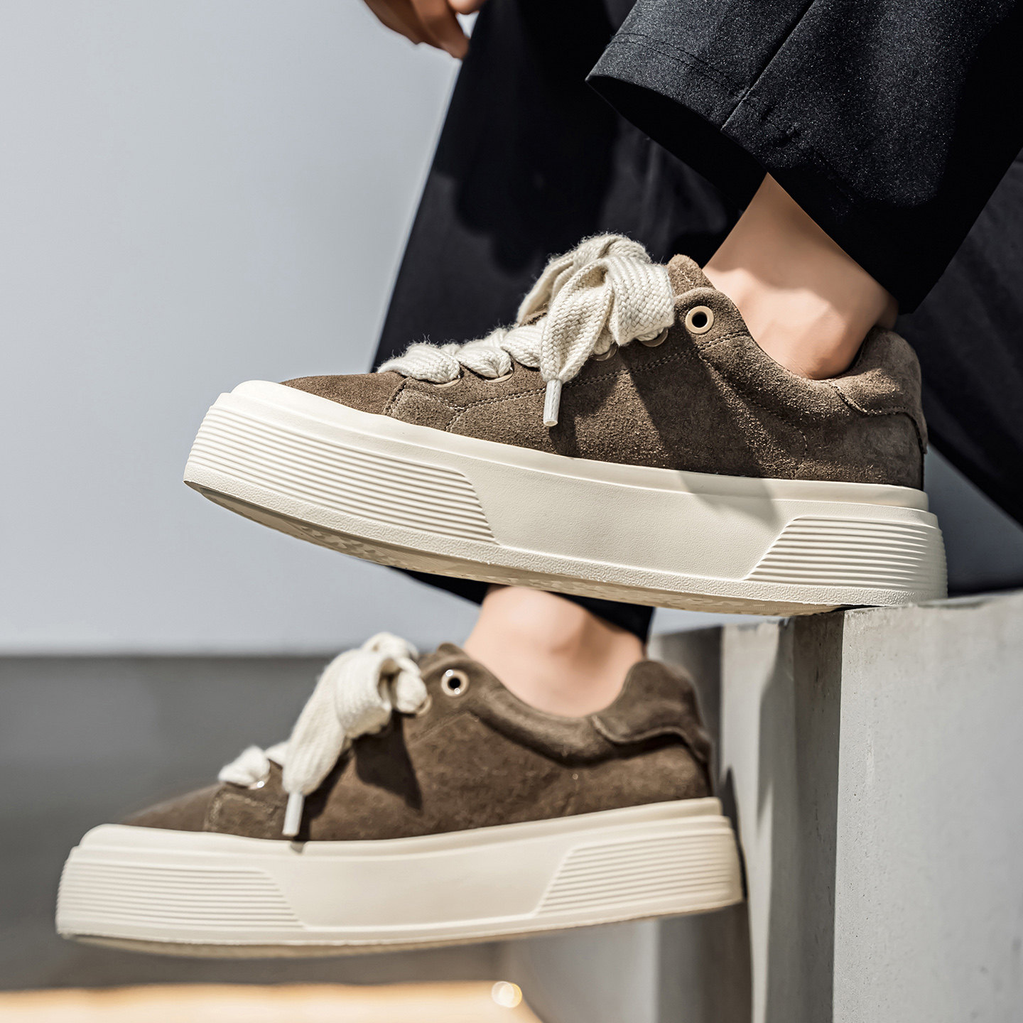 板鞋男鞋软底轻便厚底潮流时尚好看青少年复古棕色港风休闲鞋男生