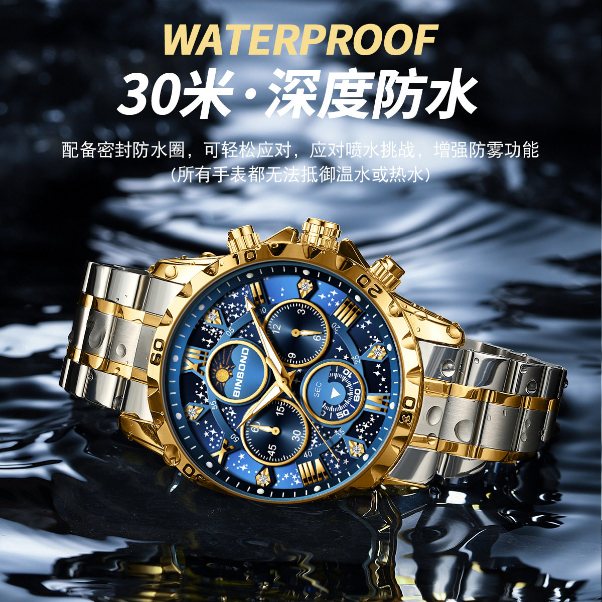 高颜值爆款新款男士手表钢带月相星辰夜光防水网红直播热卖男表