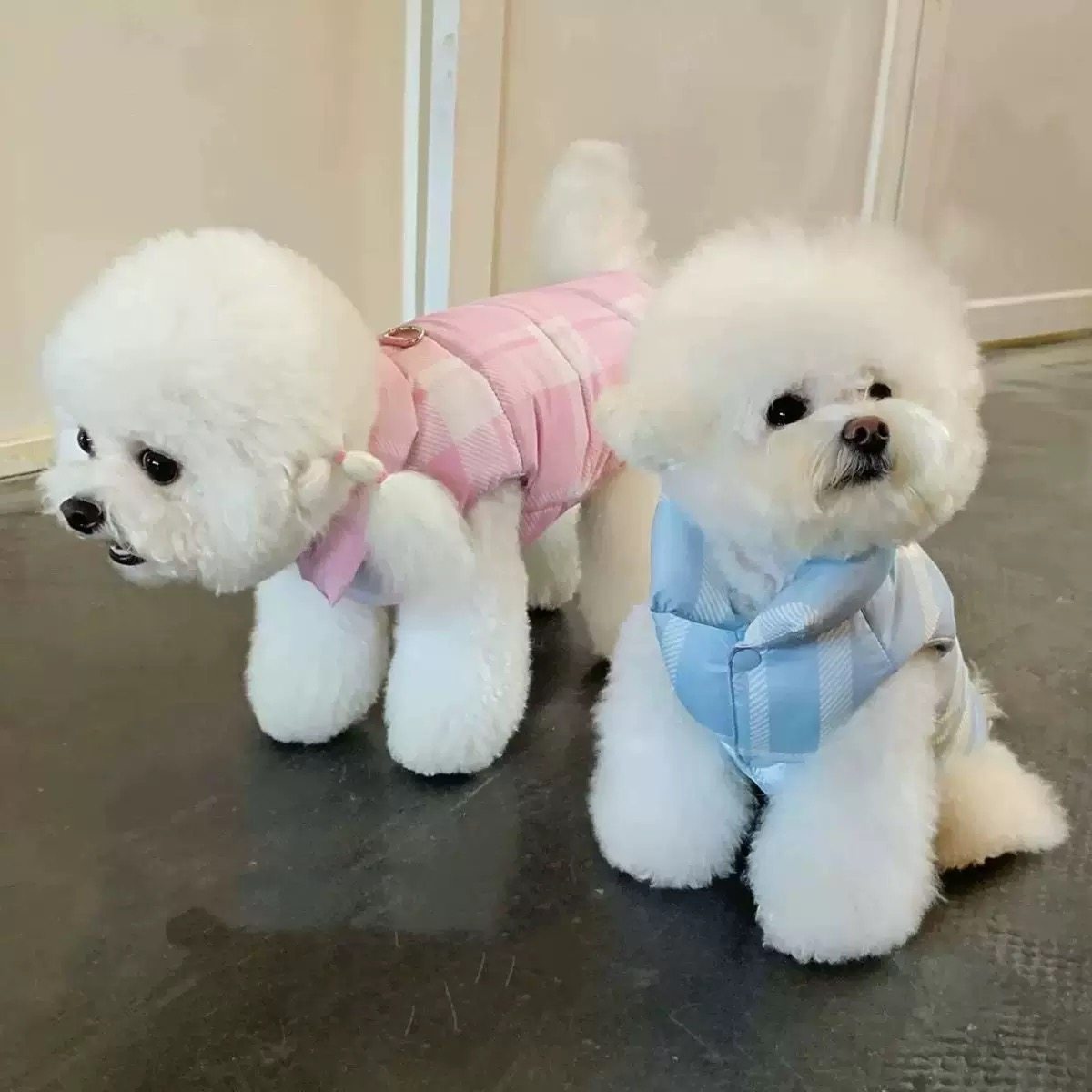 宠物衣服狗狗秋冬装泰迪比熊猫咪加厚保暖棉衣冬季格纹棉背心马甲