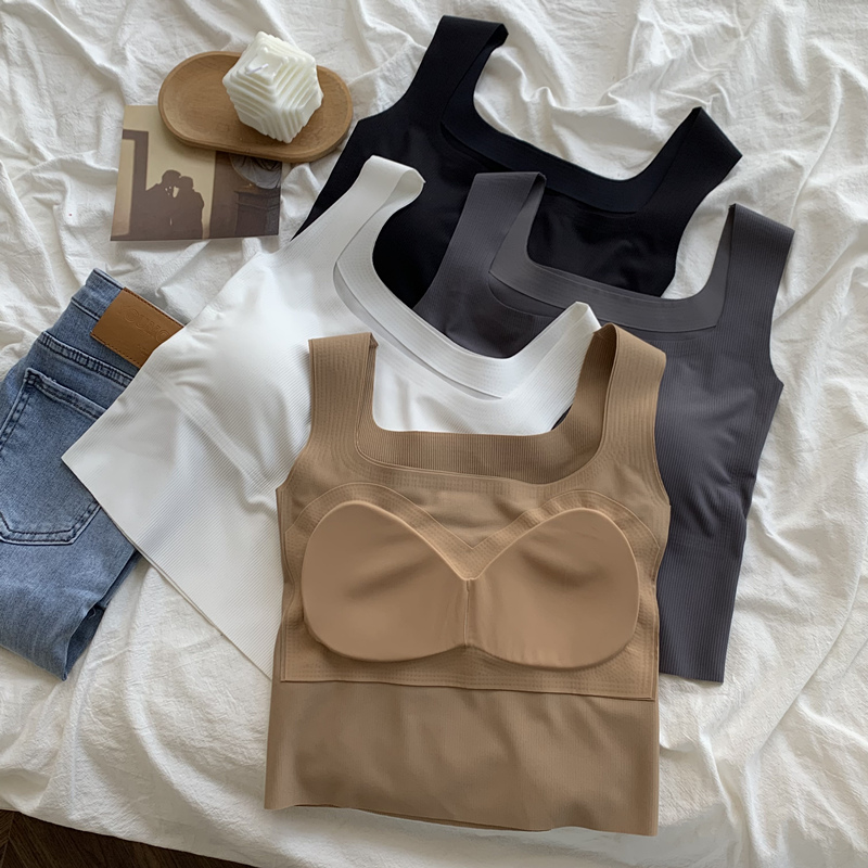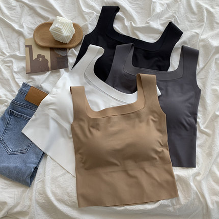 冰丝运动背心女外穿春夏新款带胸垫美背内衣西装内搭短款露脐上衣