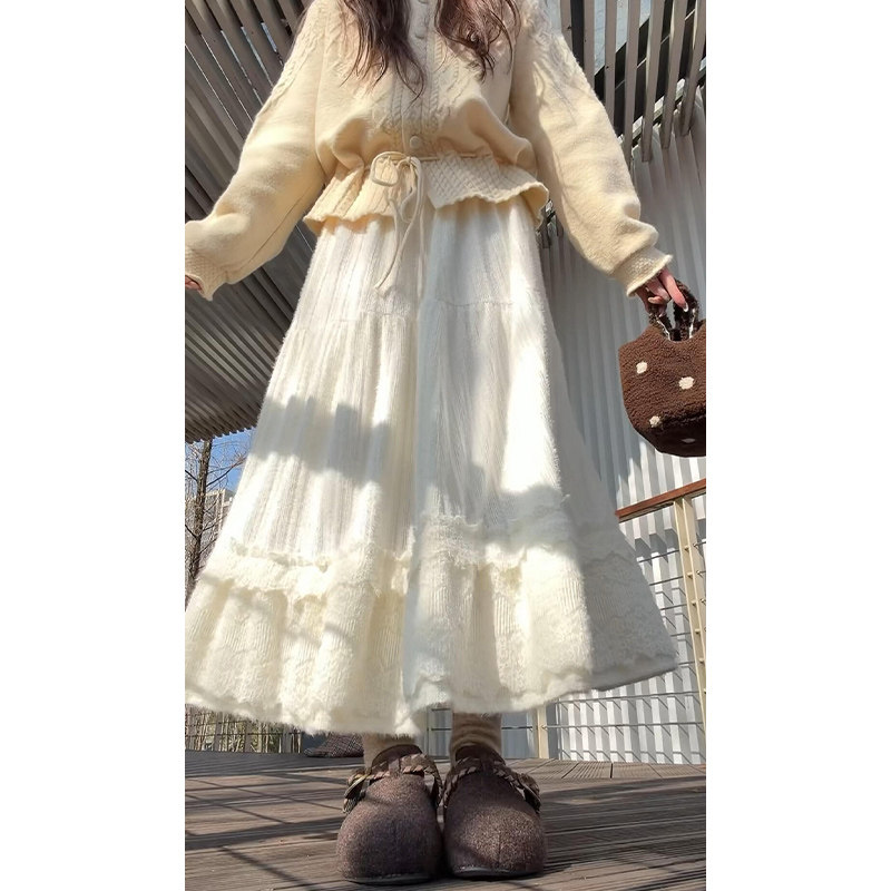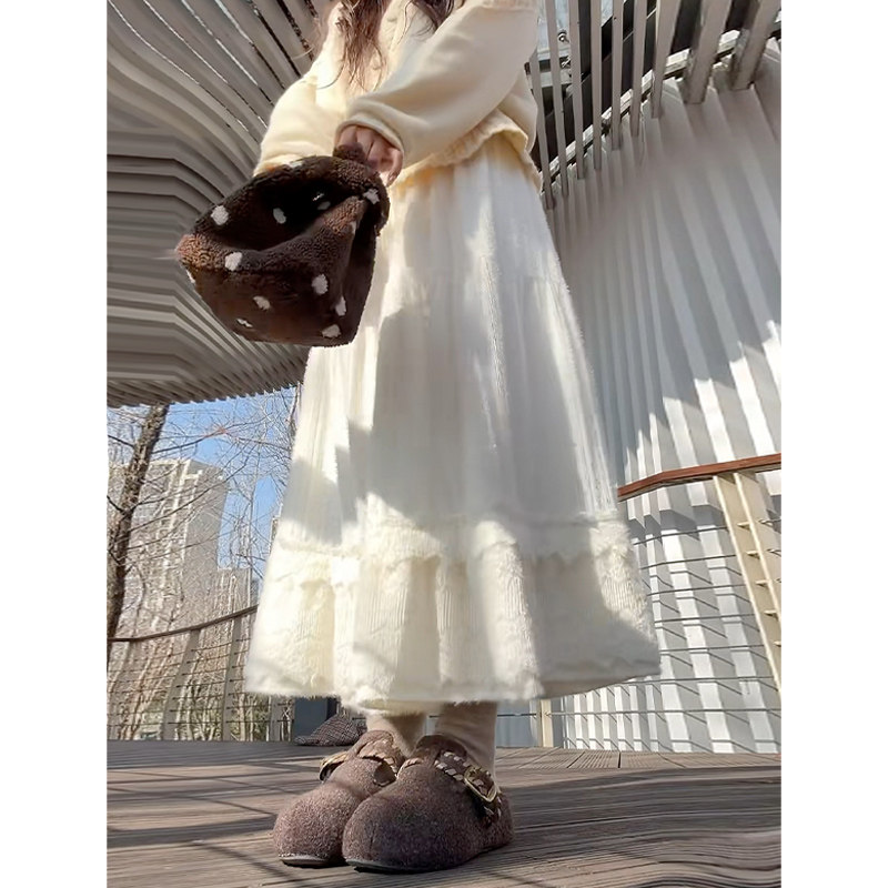 白色蕾丝花边半身裙女春秋2026新款高腰显瘦休闲a字蓬蓬蛋糕裙