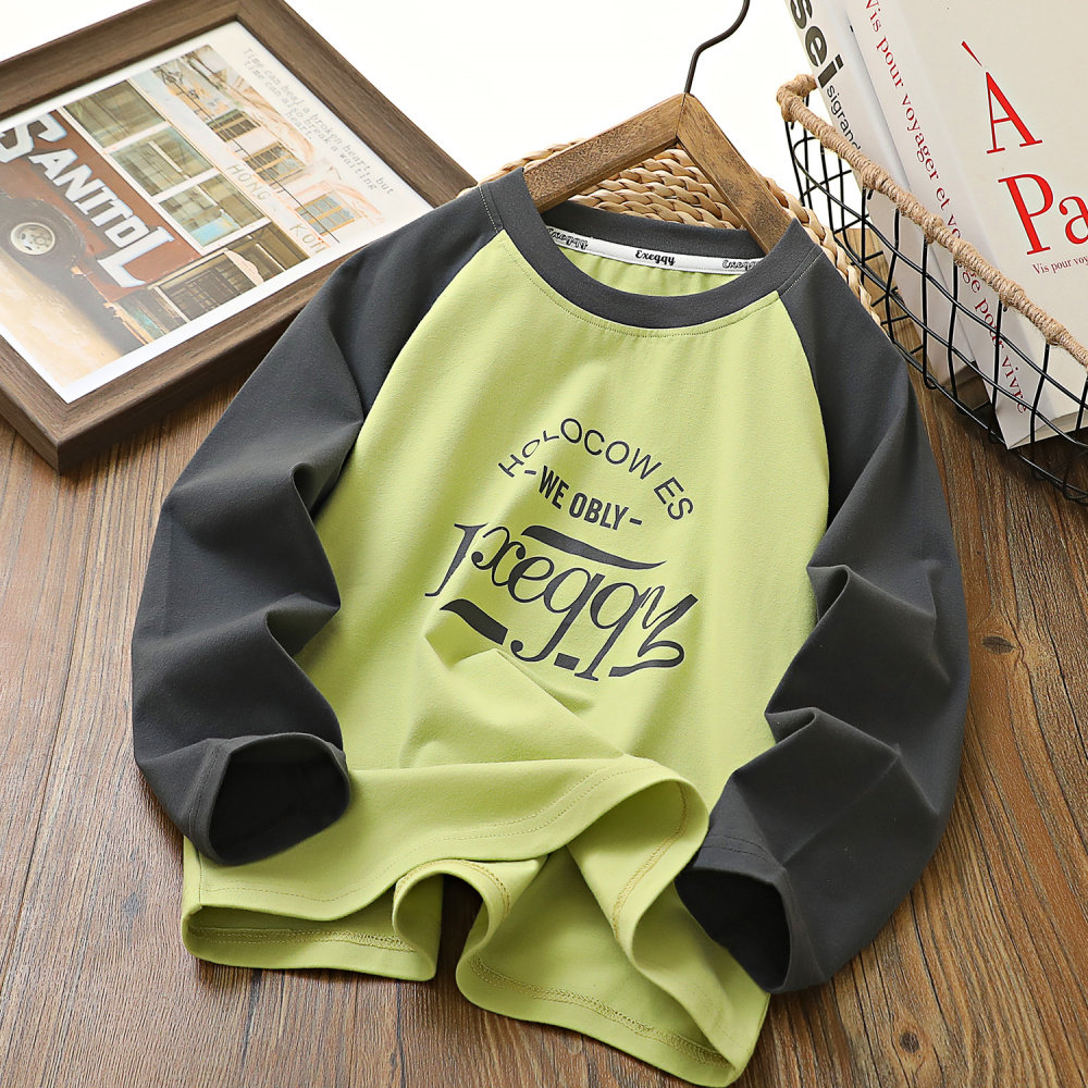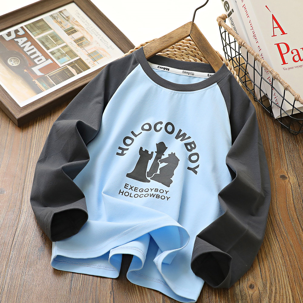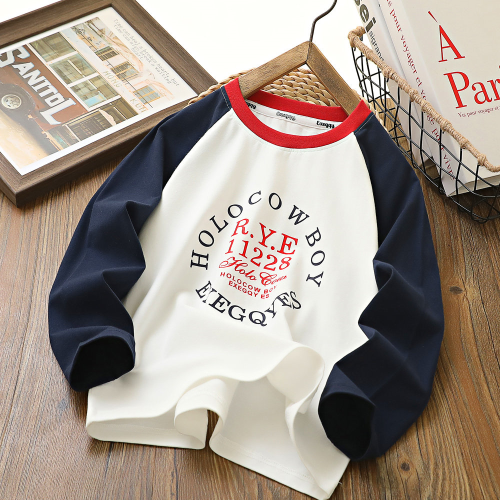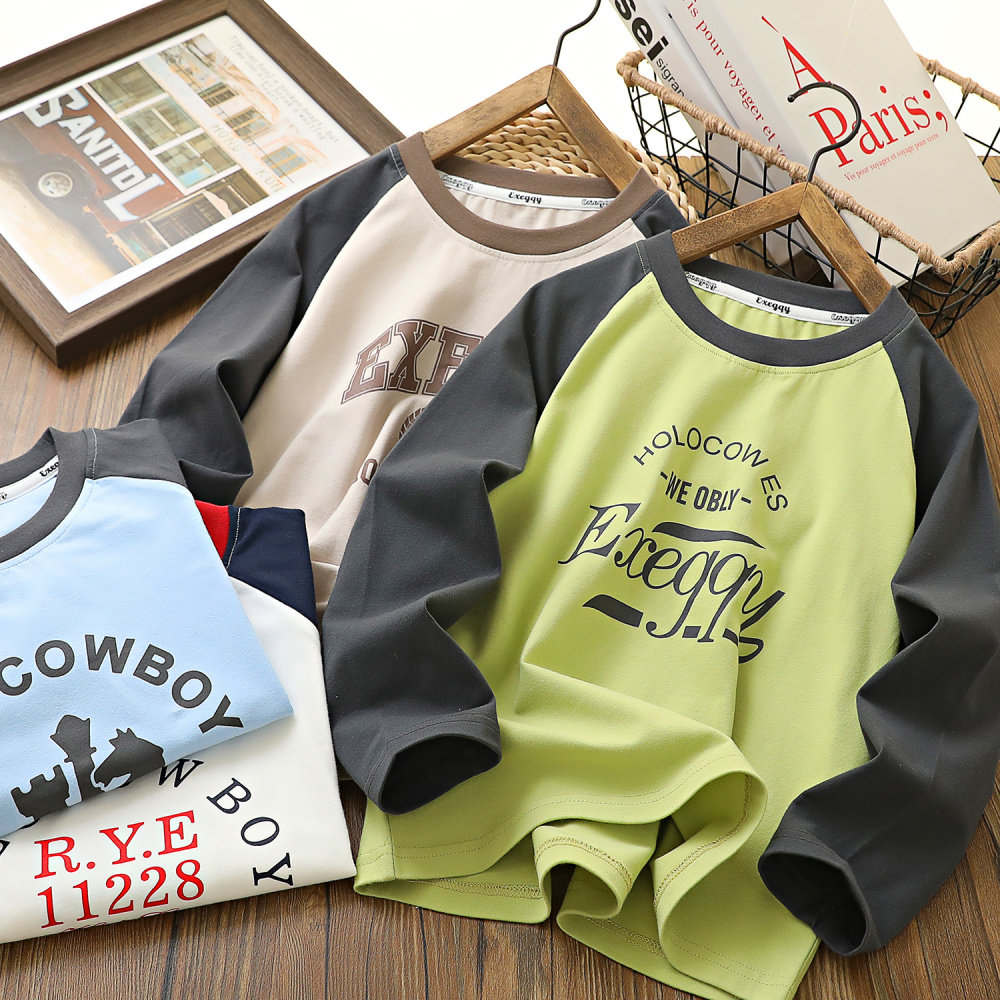 男童秋季新款纯棉拼色长袖T恤衫