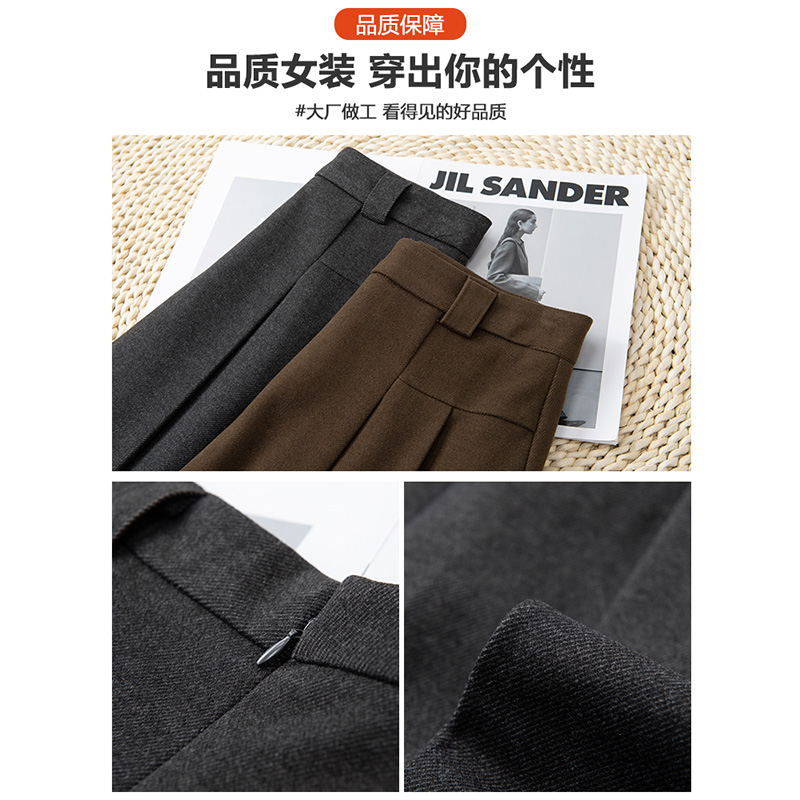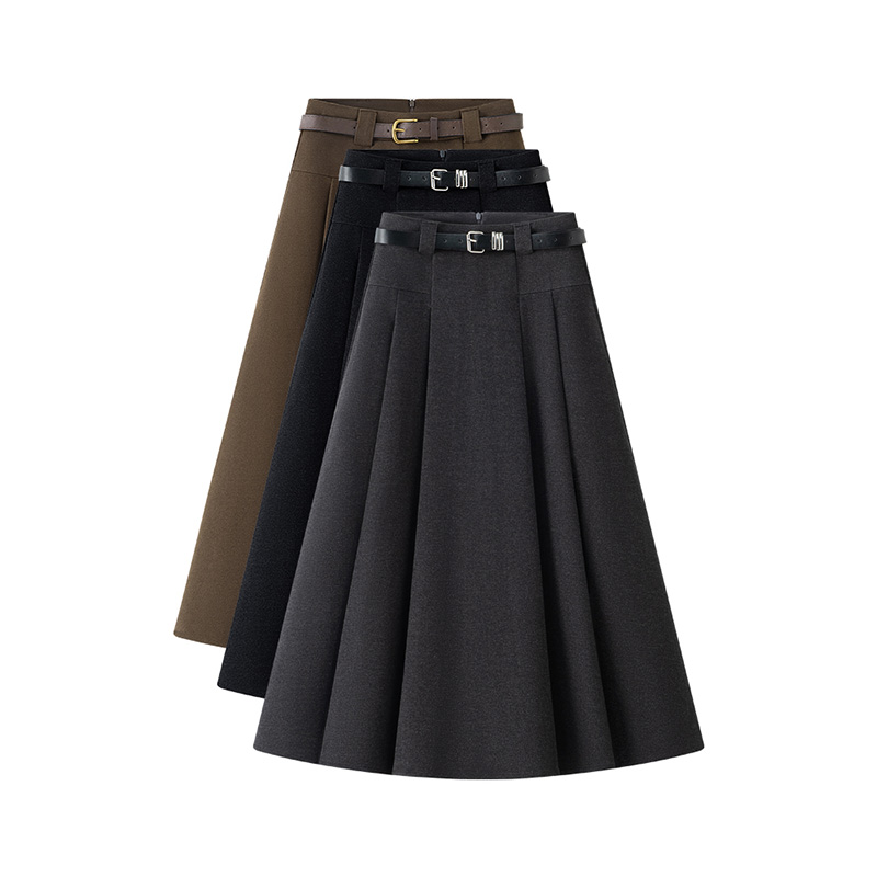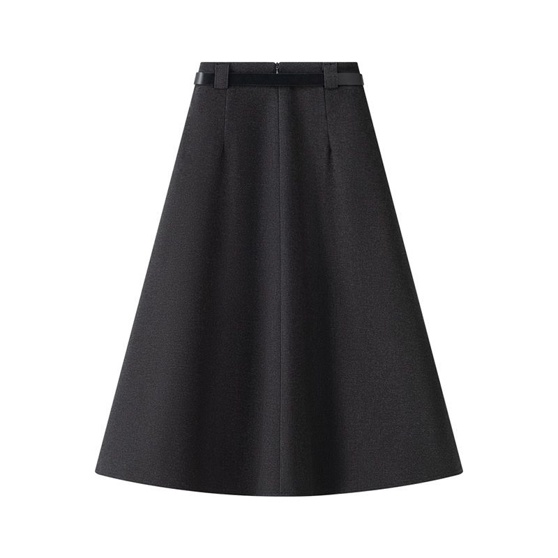 春秋灰色毛呢半身裙女秋冬季2025年新款高腰中长款百褶裙A字伞裙