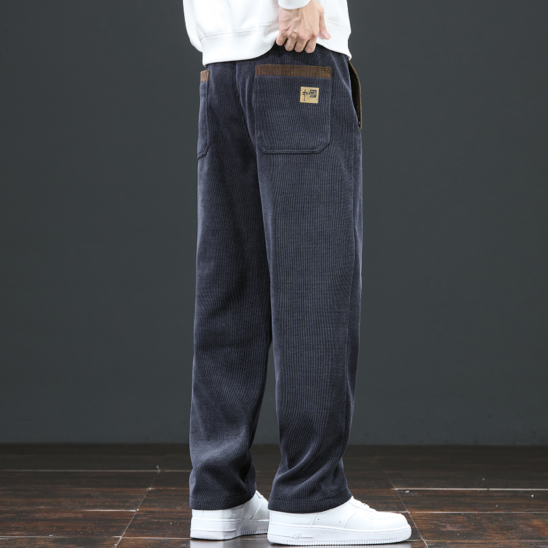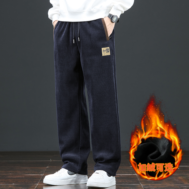 秋冬新款加绒加厚休闲裤男士宽松直筒裤子潮流百搭松紧腰运动卫裤