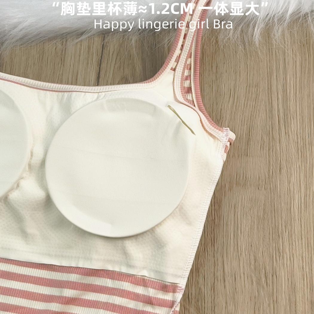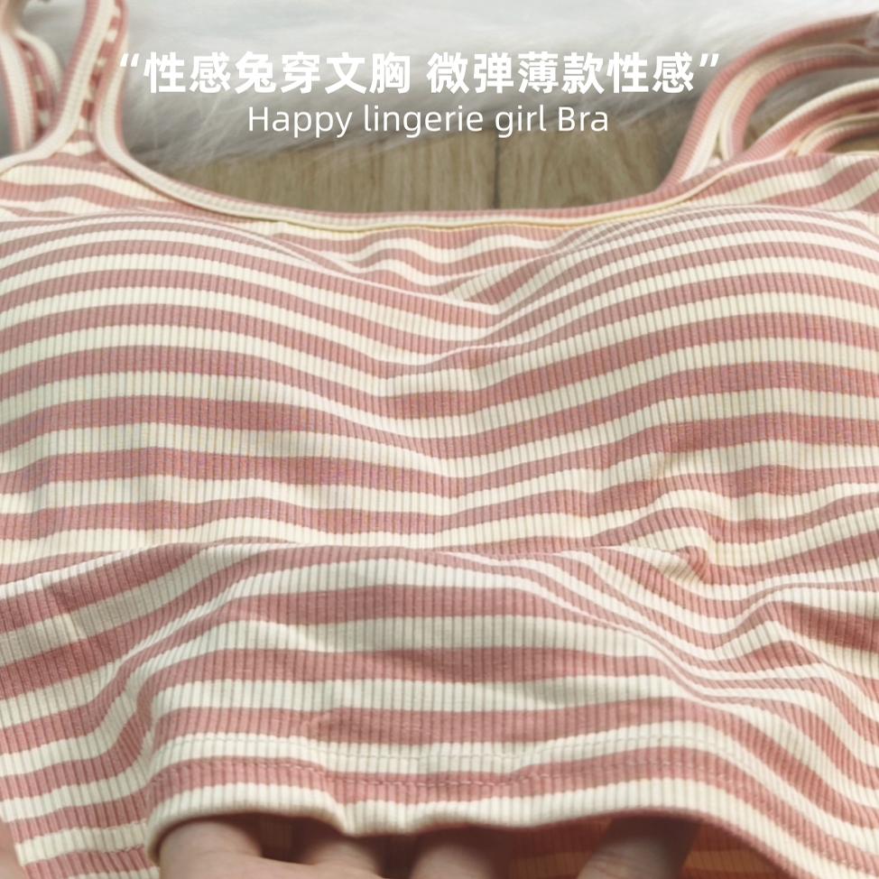 条纹背心胸垫吊带夏季外穿简约修身打底短款辣妹显瘦设计新款上衣