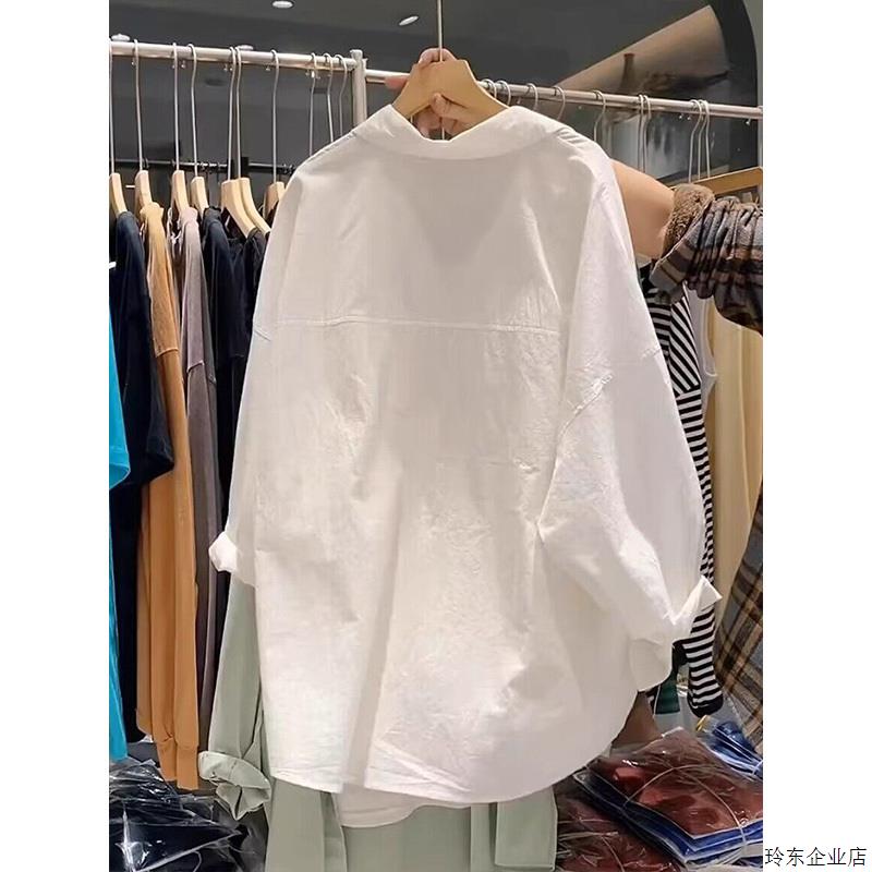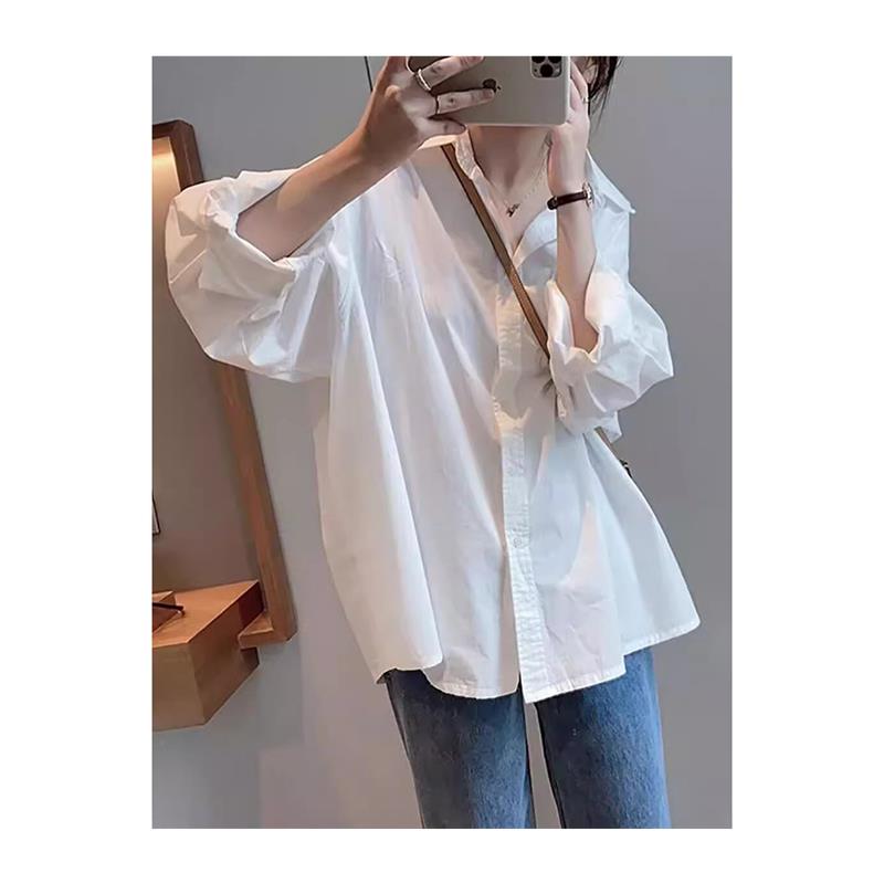 纯白色翻领衬衫女春秋欧货2025新款轻熟小众宽松慵懒风中长款上衣