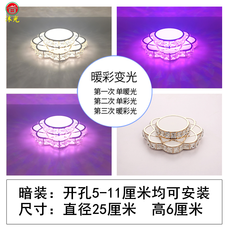 花朵水晶LED过道灯走廊灯玄关入户嵌入式吸顶灯简约现代三色调光
