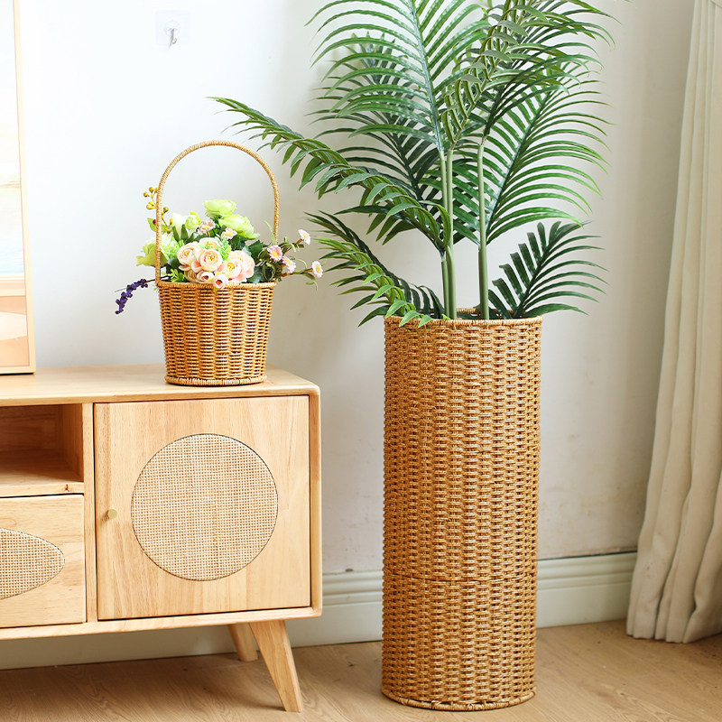闲储藤编防水伞架伞桶酒店客厅家居创意雨伞收纳桶欧北欧风花盆套
