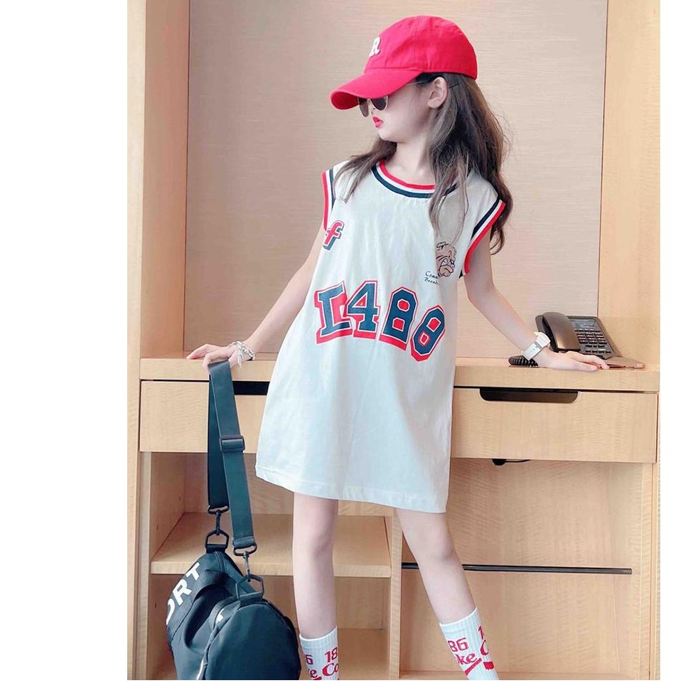 女童连衣裙夏季冰丝2025新款中大童网红球服薄款背心裙女孩t恤裙