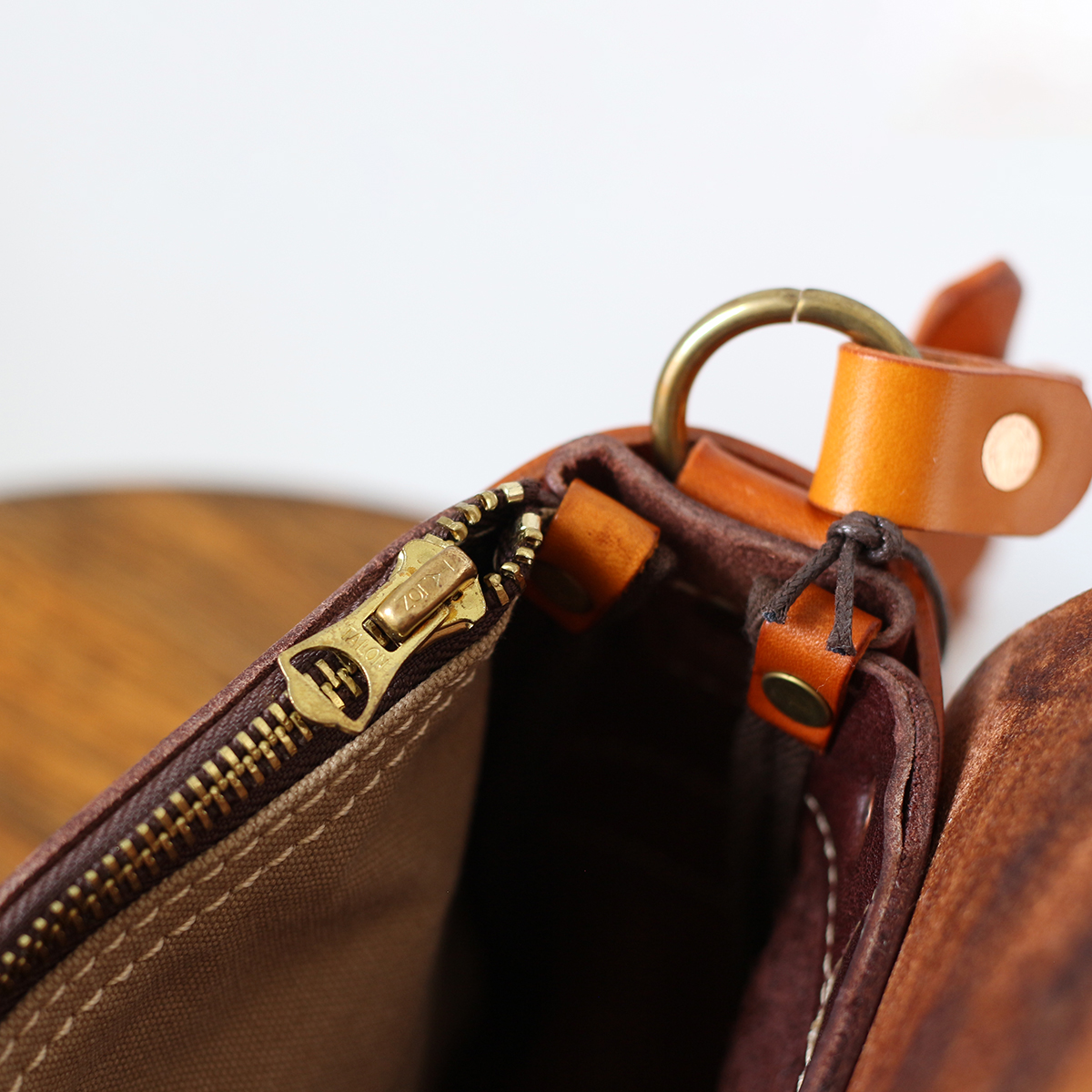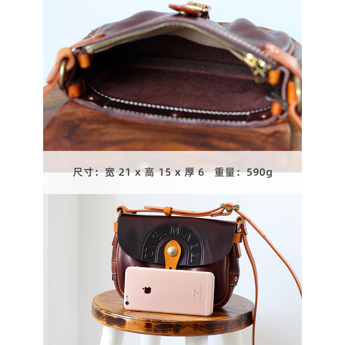 荣轻复古美式手工迷你邮差包意大利厚植鞣牛皮斜挎小包撞色马鞍包