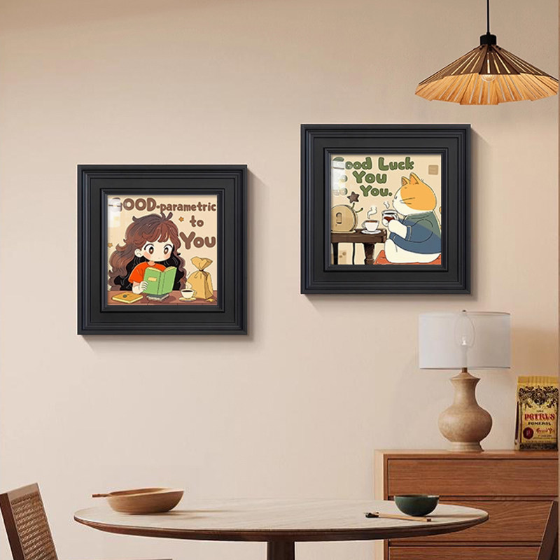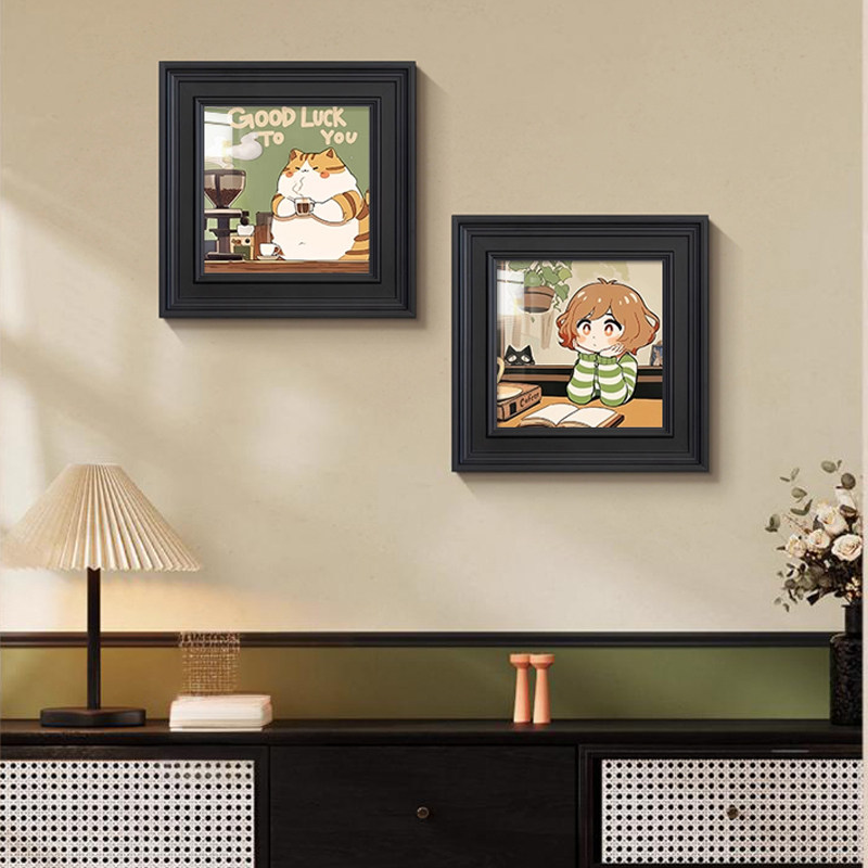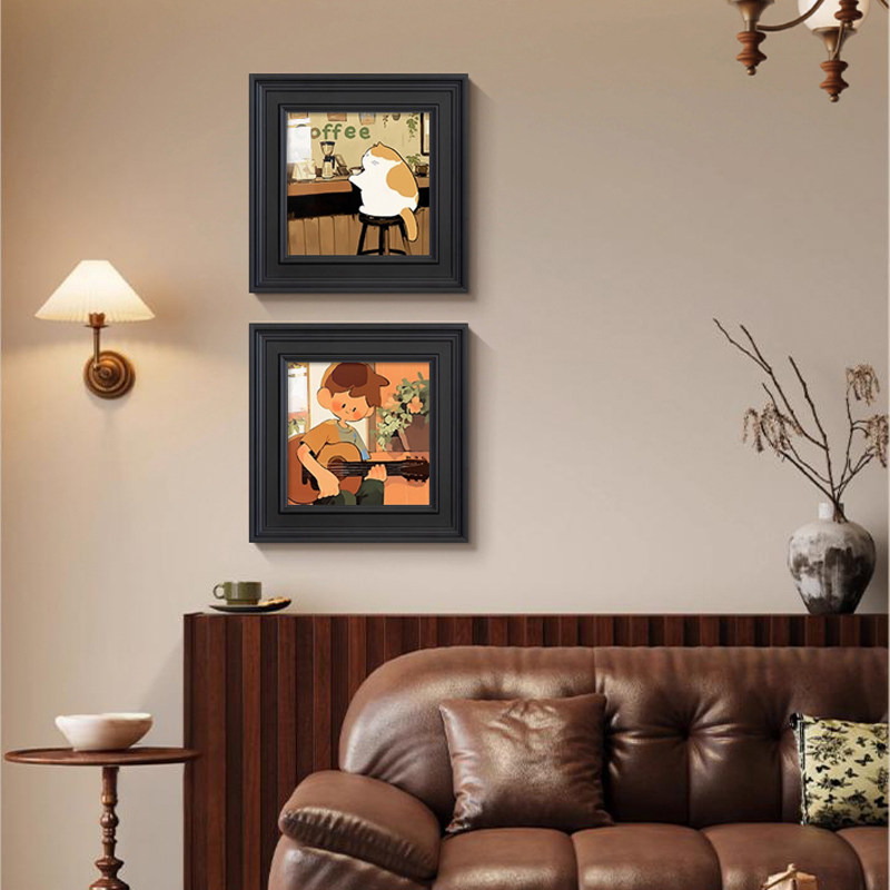 美式复古客厅装饰画卡通猫咪咖啡店氛围布置中古玄关小众艺术挂画