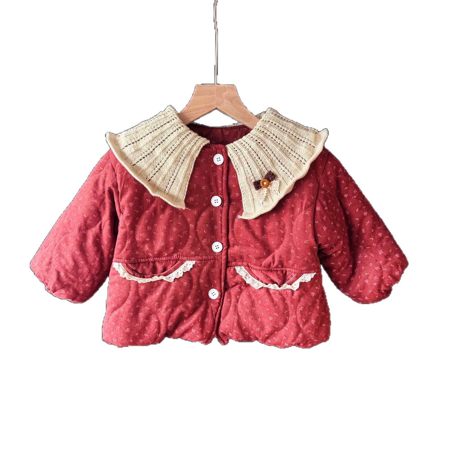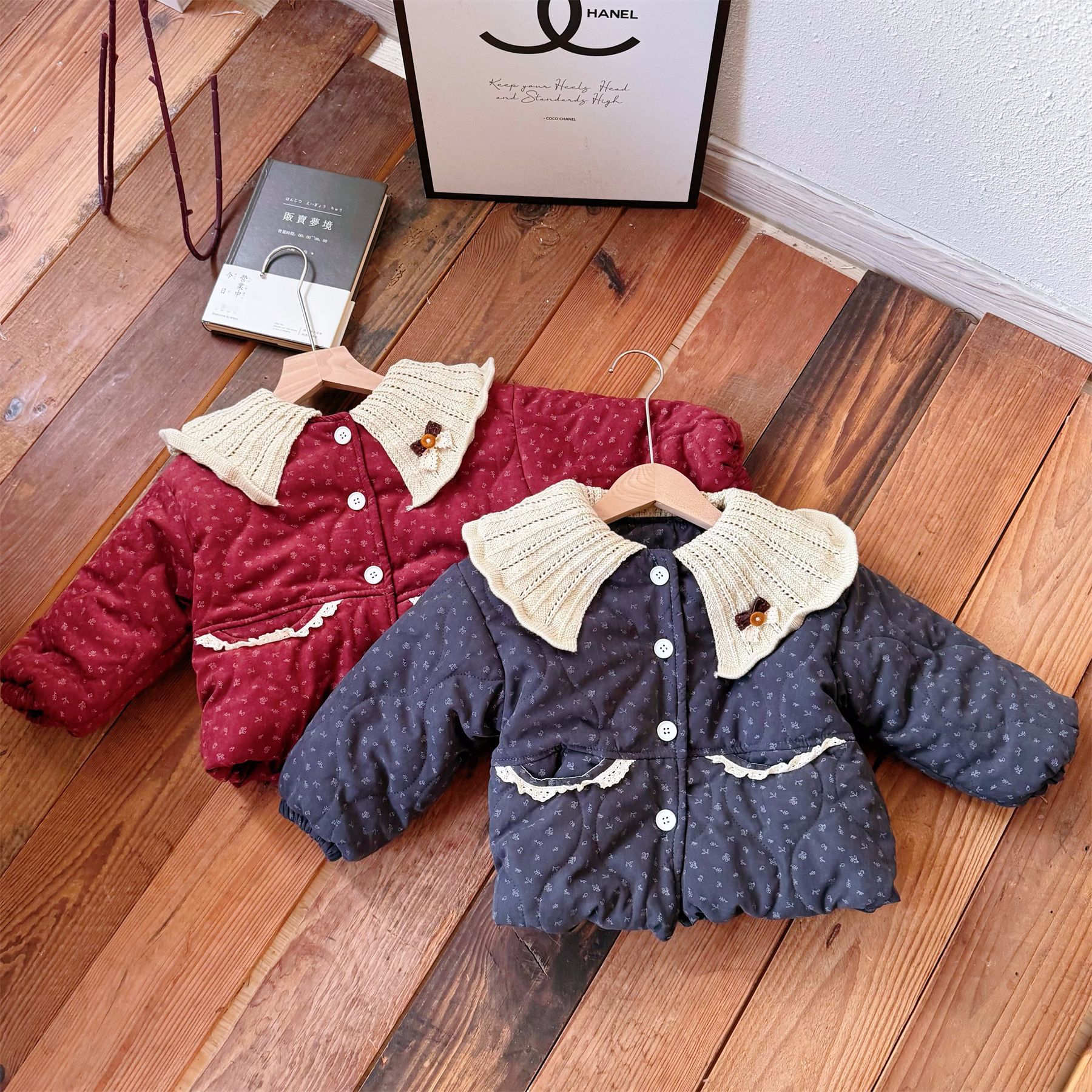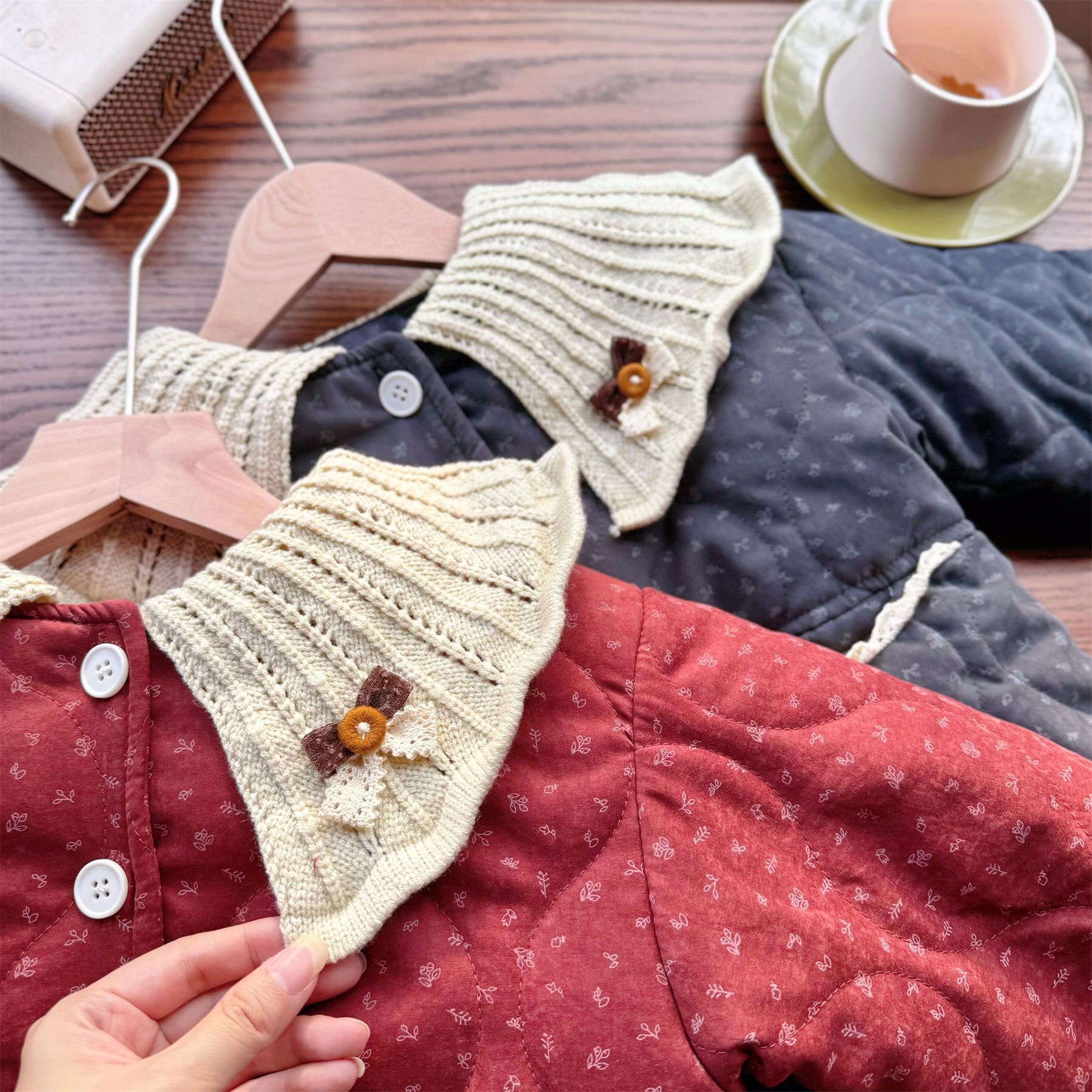 韩版儿童洋气加绒毛线领棉衣2025冬装女童波点加厚保暖棉袄子外套