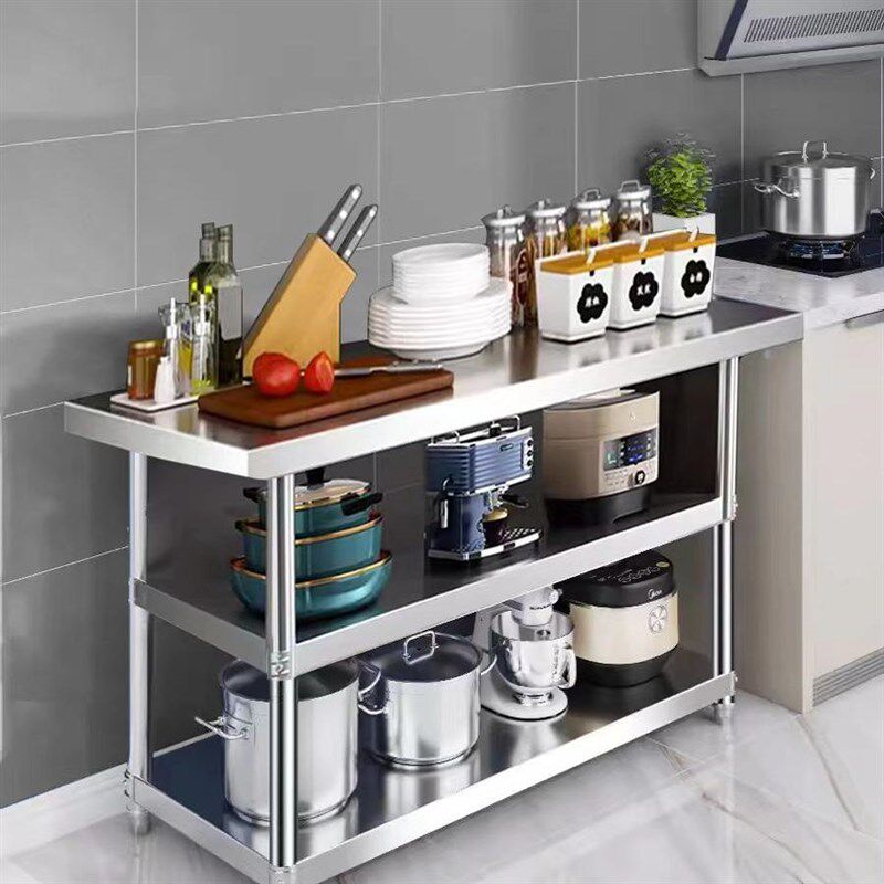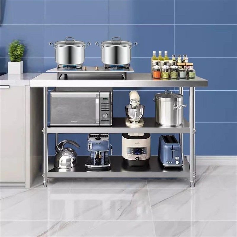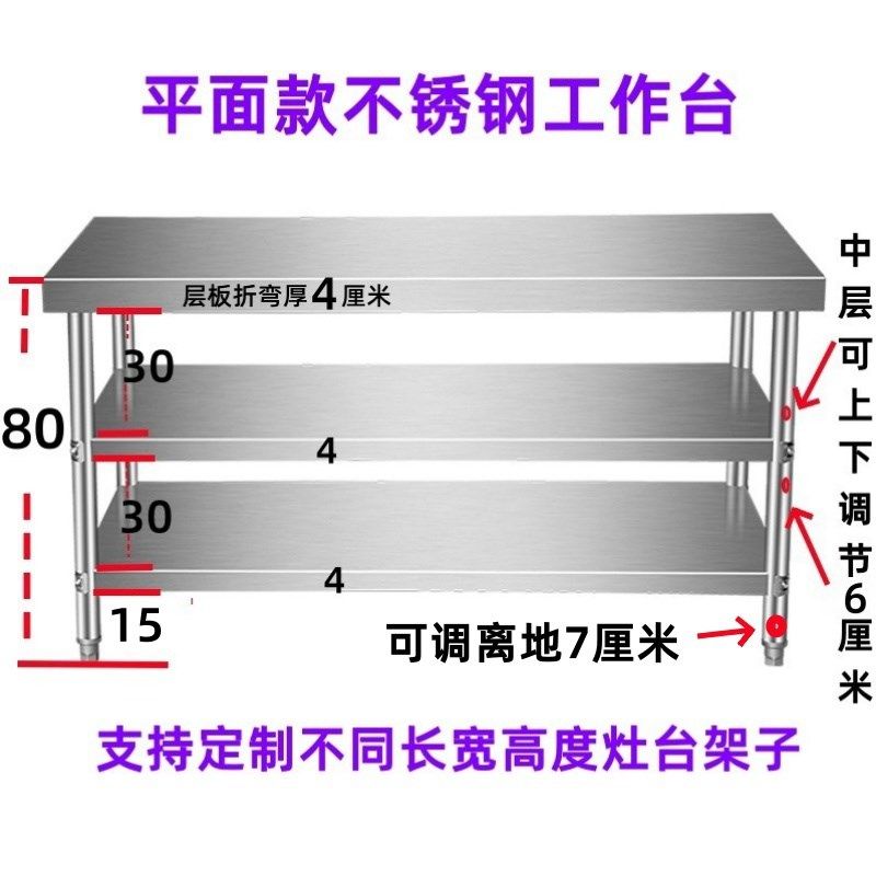 不锈钢工作台三层l厨房灶台案板收纳置物架打荷台饭店切菜桌打包
