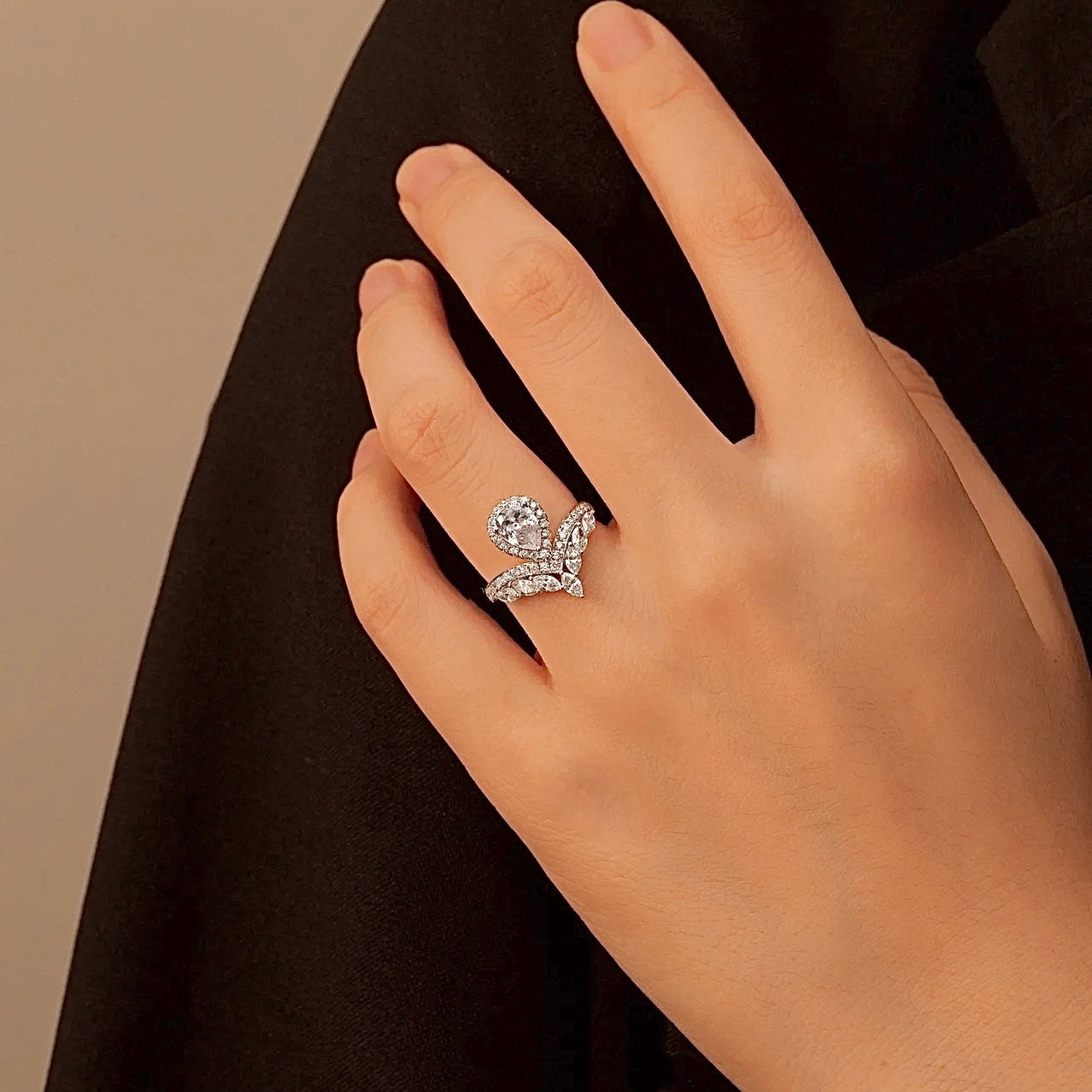 正品水滴培育钻石18K金钻戒女时尚梨形结婚婚戒送女朋友生日礼物