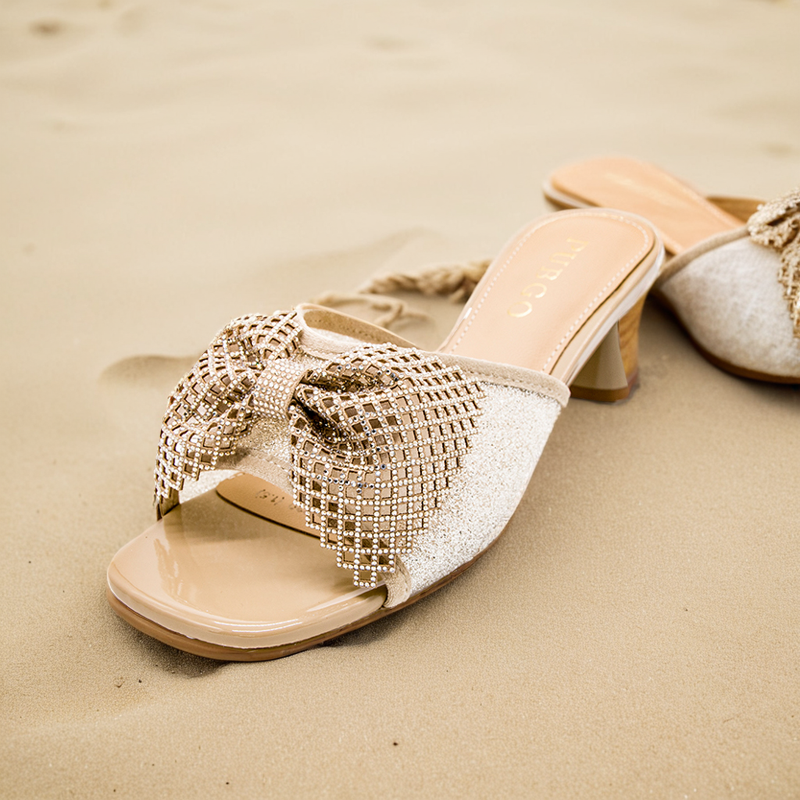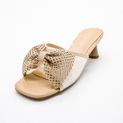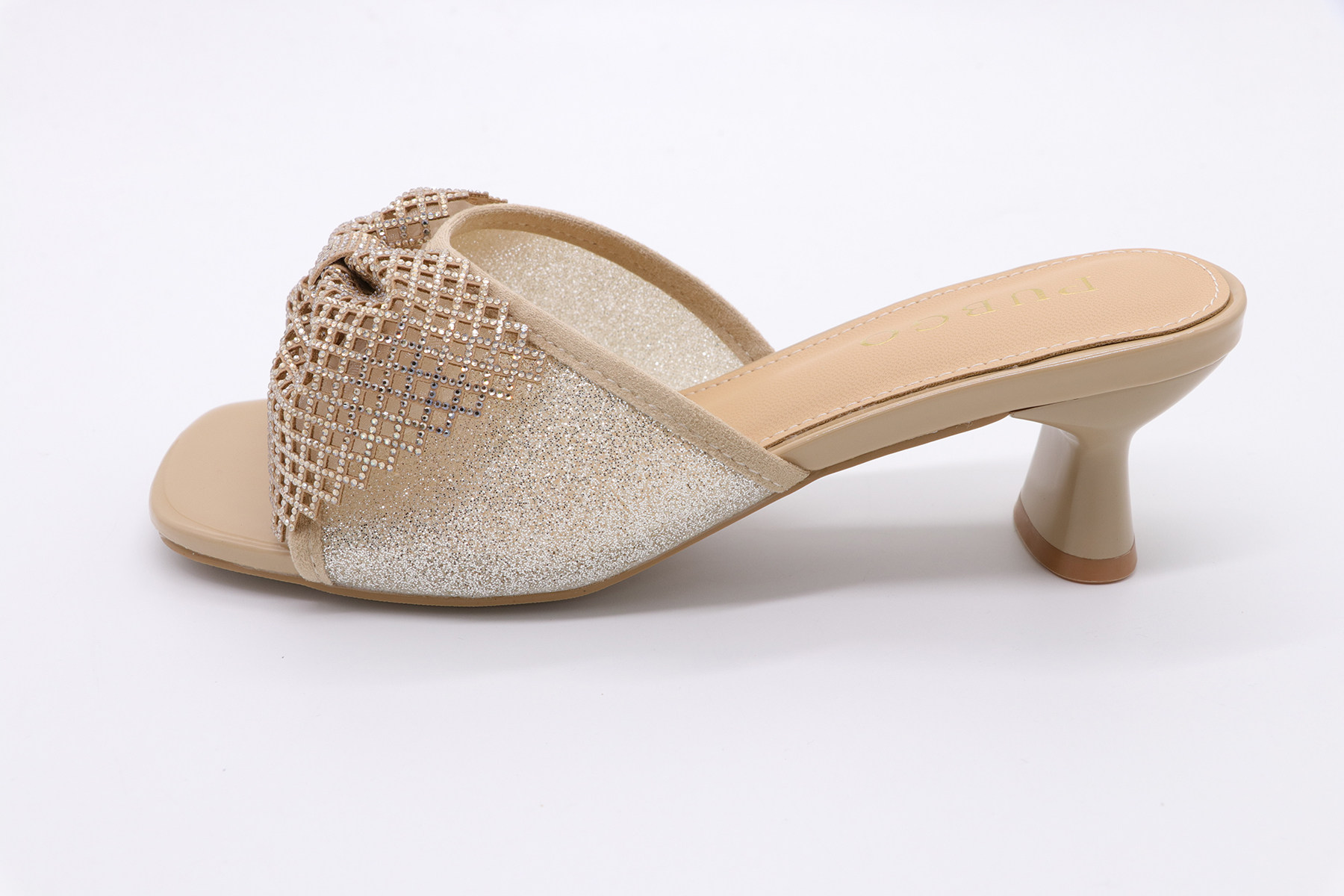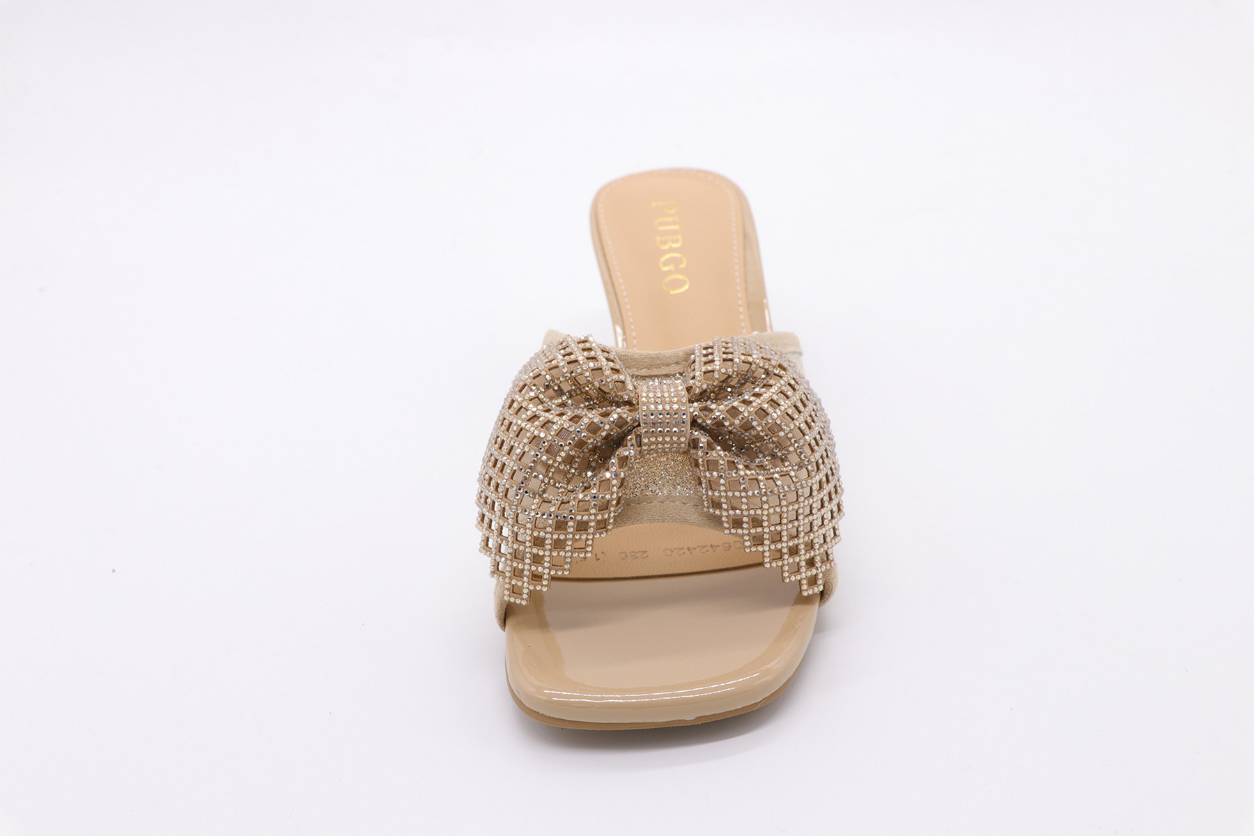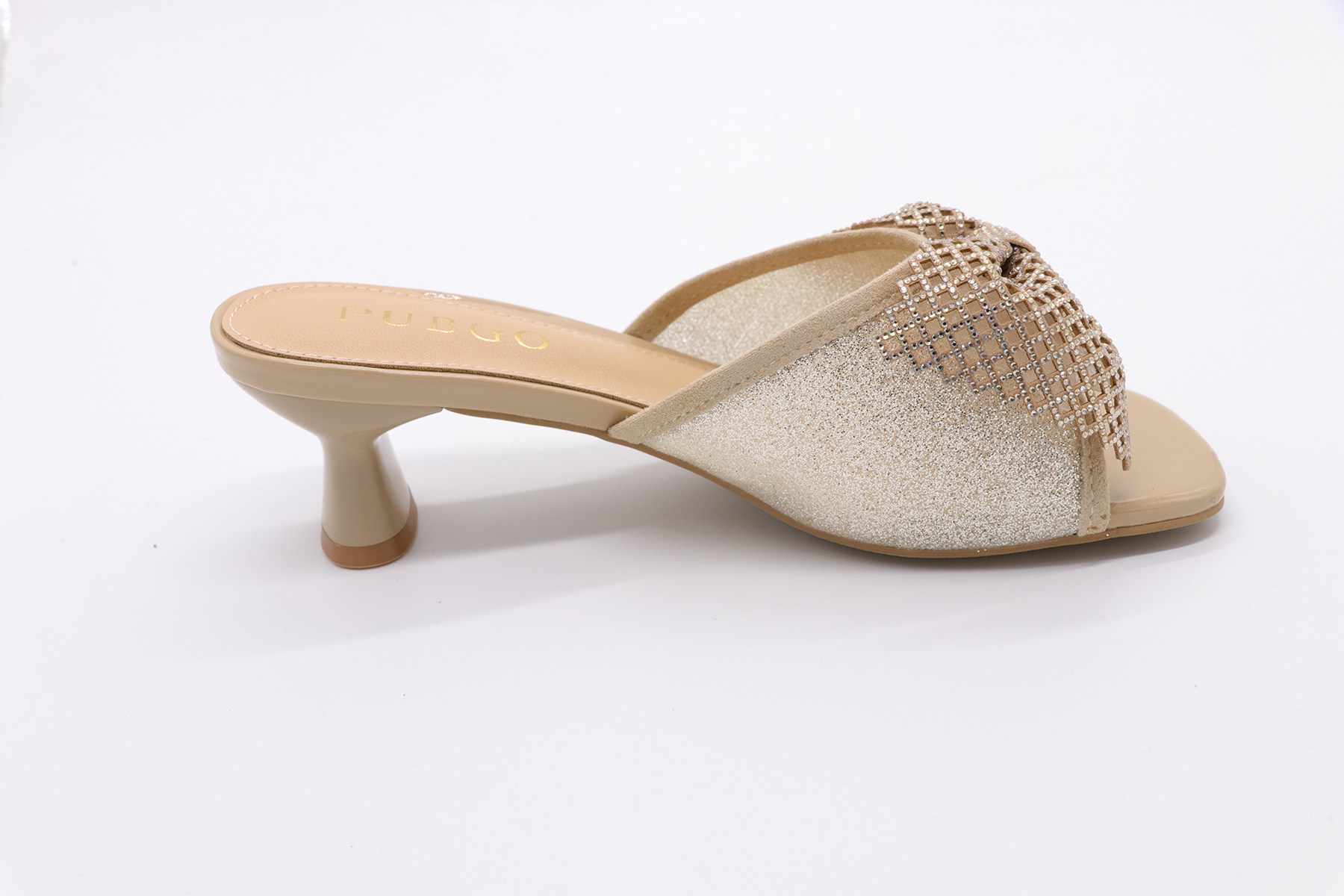 PUBGO/千喜步步高2024夏方头高跟拖鞋时尚轻便粗跟透明凉拖鞋女