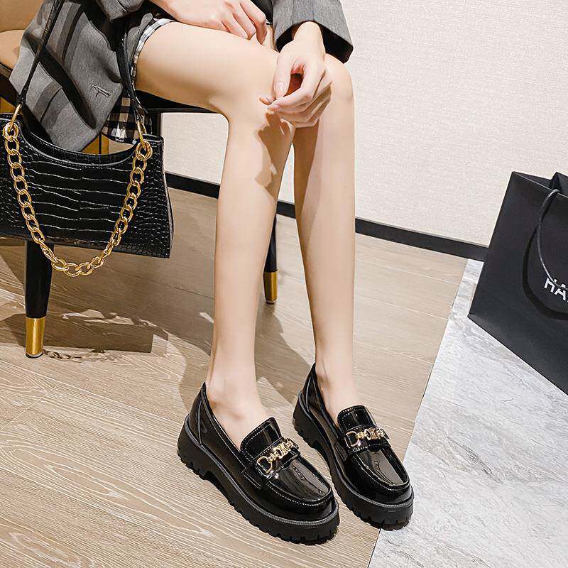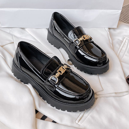 女鞋秋冬2025新款包鞋女粗跟厚底内增高乐福鞋一脚蹬英伦小皮鞋女