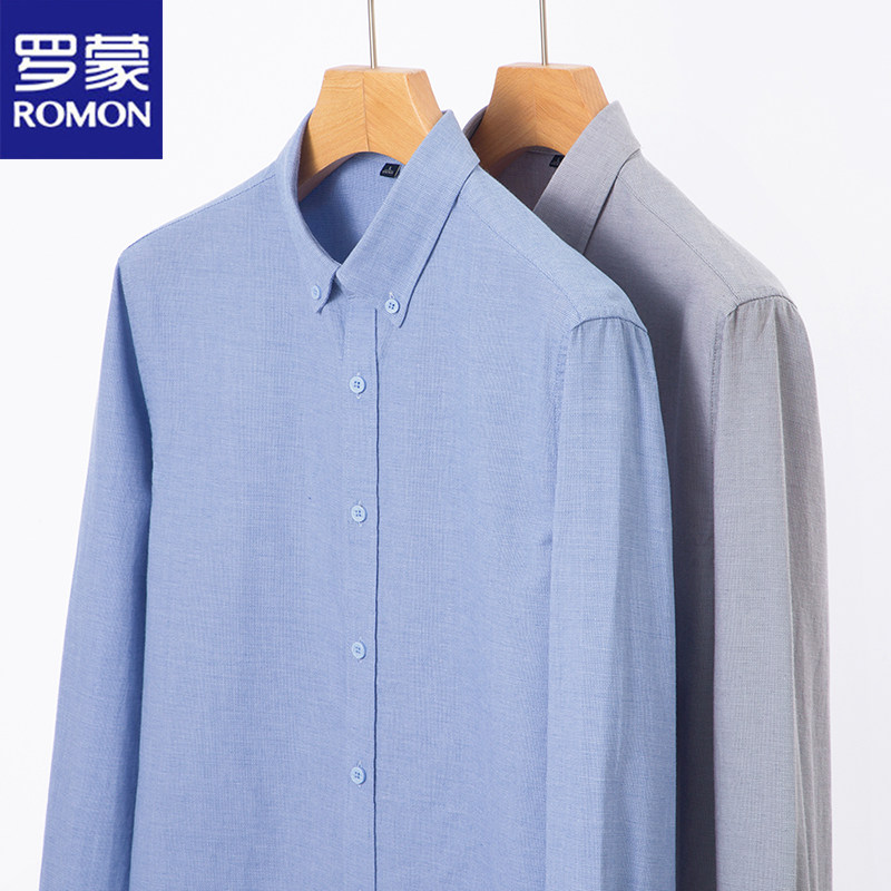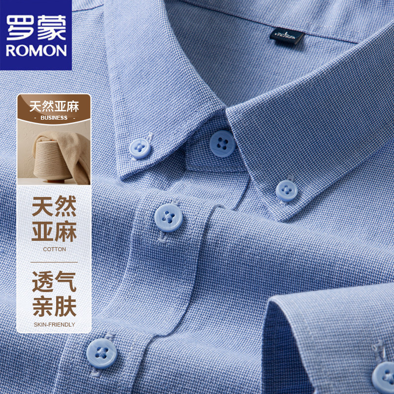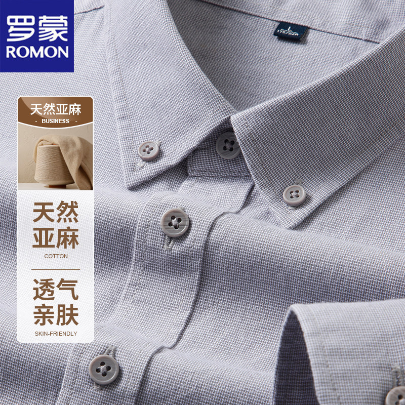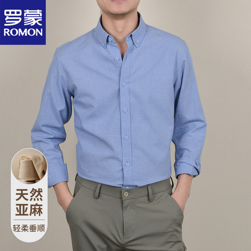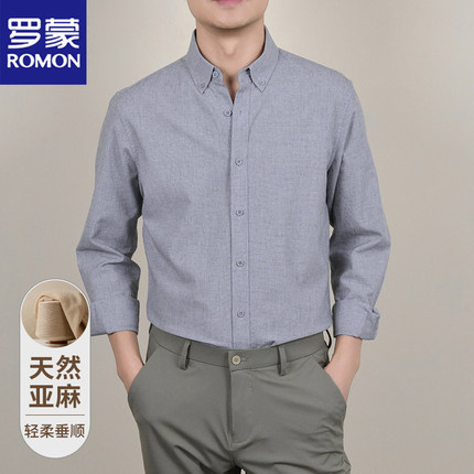 罗蒙天丝亚麻衬衫男士免烫长袖