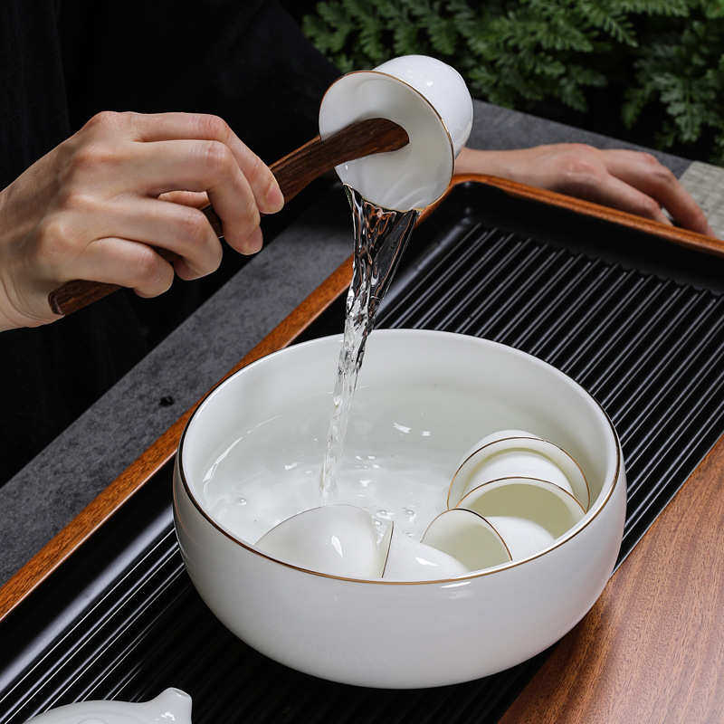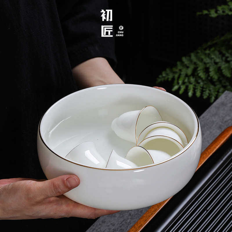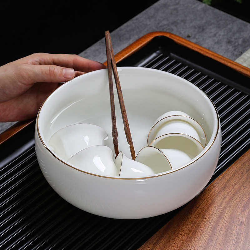 羊脂玉高端茶洗笔洗水盂洗茶杯碗白瓷家用大号中式洗茶具盆茶渣缸