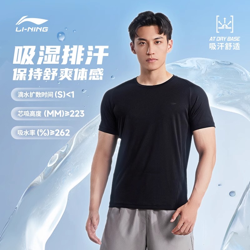 李宁速干T恤男士夏季新款健身男装透气运动上衣男速干衣跑步短袖