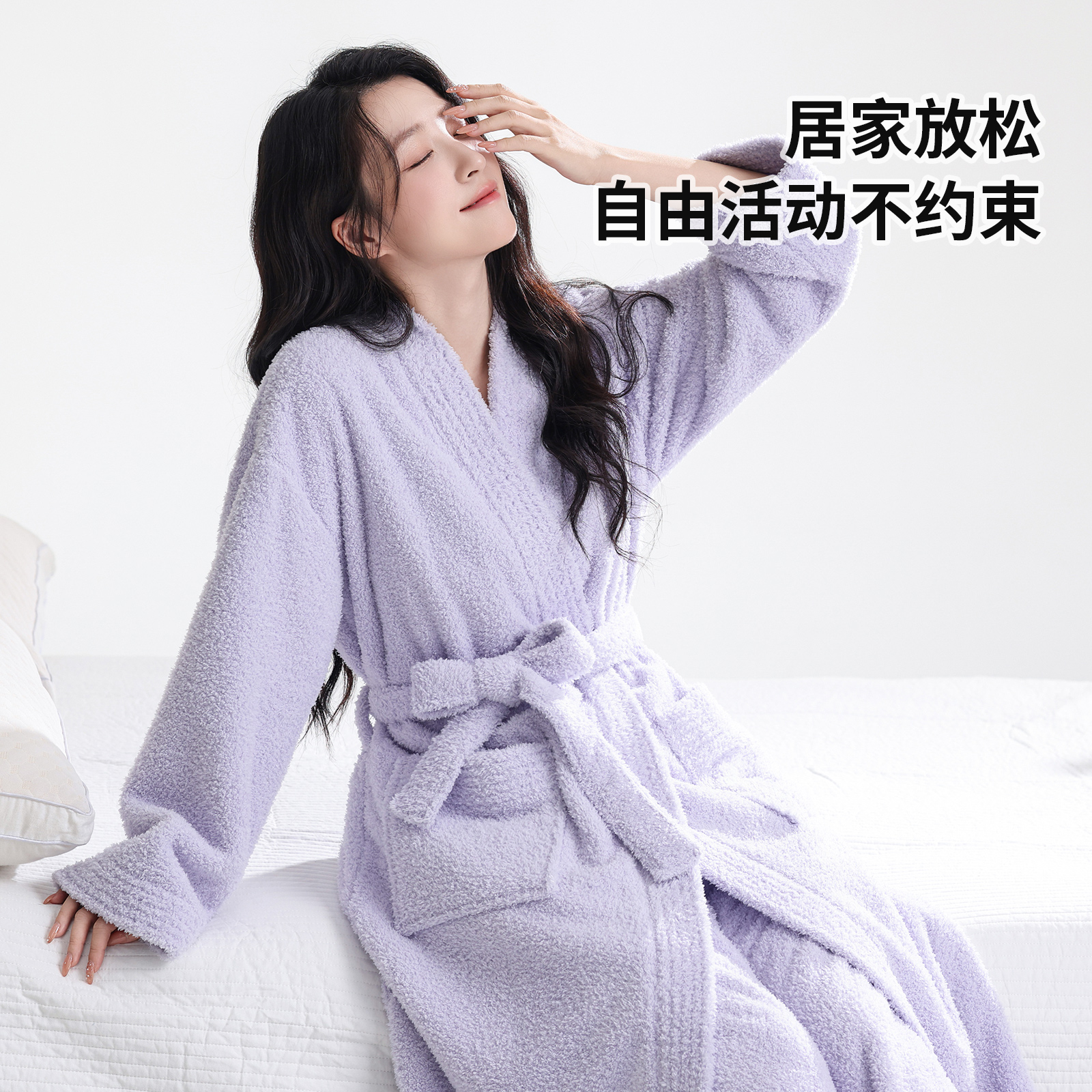 恒源祥冬季女士加绒加厚珊瑚绒保暖睡衣睡袍长款抗菌法兰绒家居服